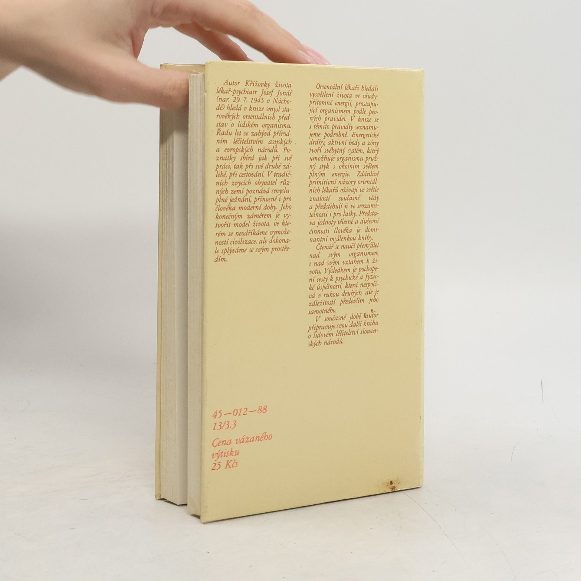 Autor Křížovky života lékař-psychiatr Josef Jonáš (nar. 29. 7. 1945 v Náchodě) hledá v knize smysl starověkých orientálních představ o lidském organismu. Řadu let se zabývá přírodním léčitelstvím asijských a evropských národů. Poznatky sbírá jak při své práci, tak při své druhé zálibě, při cestování. V tradičních zvycích obyvatel různých zemí poznává smysluplné jednání, přínosné i pro člověka moderní doby. Jeho konečným záměrem je vytvořit model života, ve kterém se neodříkáme vymožeností civilizace, ale dokonale splýváme se svým prostředím. Orientální lékaři hledali vysvětlení života ve všudypřítomné energii, prostupující organismem podle pevných pravidel. V knize se s těmito pravidly seznamujeme podrobně. Energetické dráhy, aktivní body a zóny tvoří svébytný systém, který umožňuje organismu pružný styk s okolním světem plným energie. Zdánlivě primitivní názory orientálních lékařů ožívají ve světle znalostí současné vědy a předstihují ji ve srozumitelnosti i pro laiky. Představa jednoty tělesné a duševní činnosti člověka je dominantní myšlenkou knihy. Čtenář se naučí přemýšlet nad svým organismem i nad svým vztahem k životu. Výsledkem je pochopení cesty k psychické a fyzické úspěšnosti, která nespočívá v rukou druhých, ale je záležitostí především jeho samotného. V současné době autor připravuje svou další knihu o lidovém léčitelství slovanských národů.