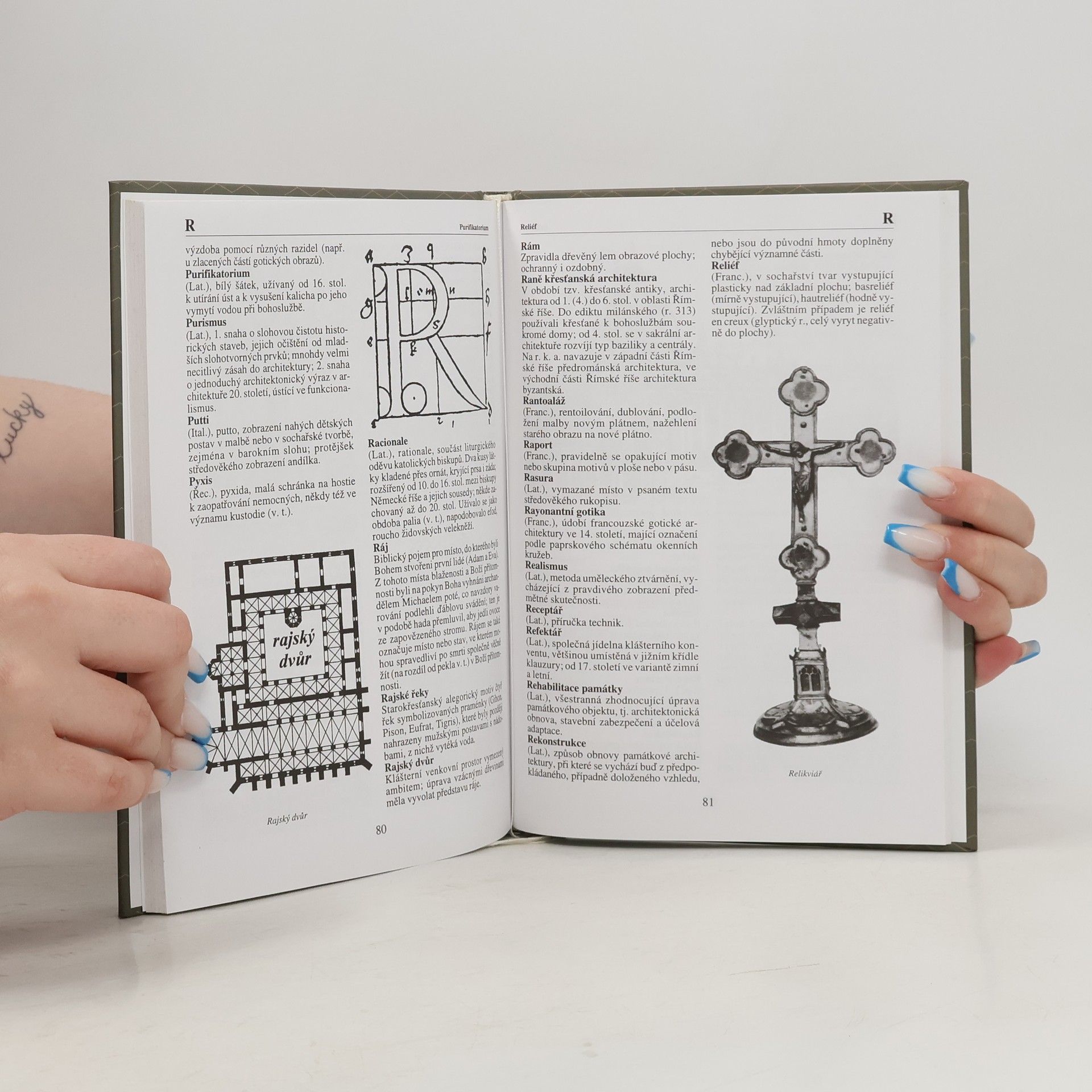 Stručný výkladový slovník termínů označujících v umění náboženskému kultu zasvěcená stavební, sochařská a malířská díla i díla užitého umění. Termíny se vztahují i na složky uměleckých děl, témata, motivy, význam, obsah, kompozice apod. (nkp)