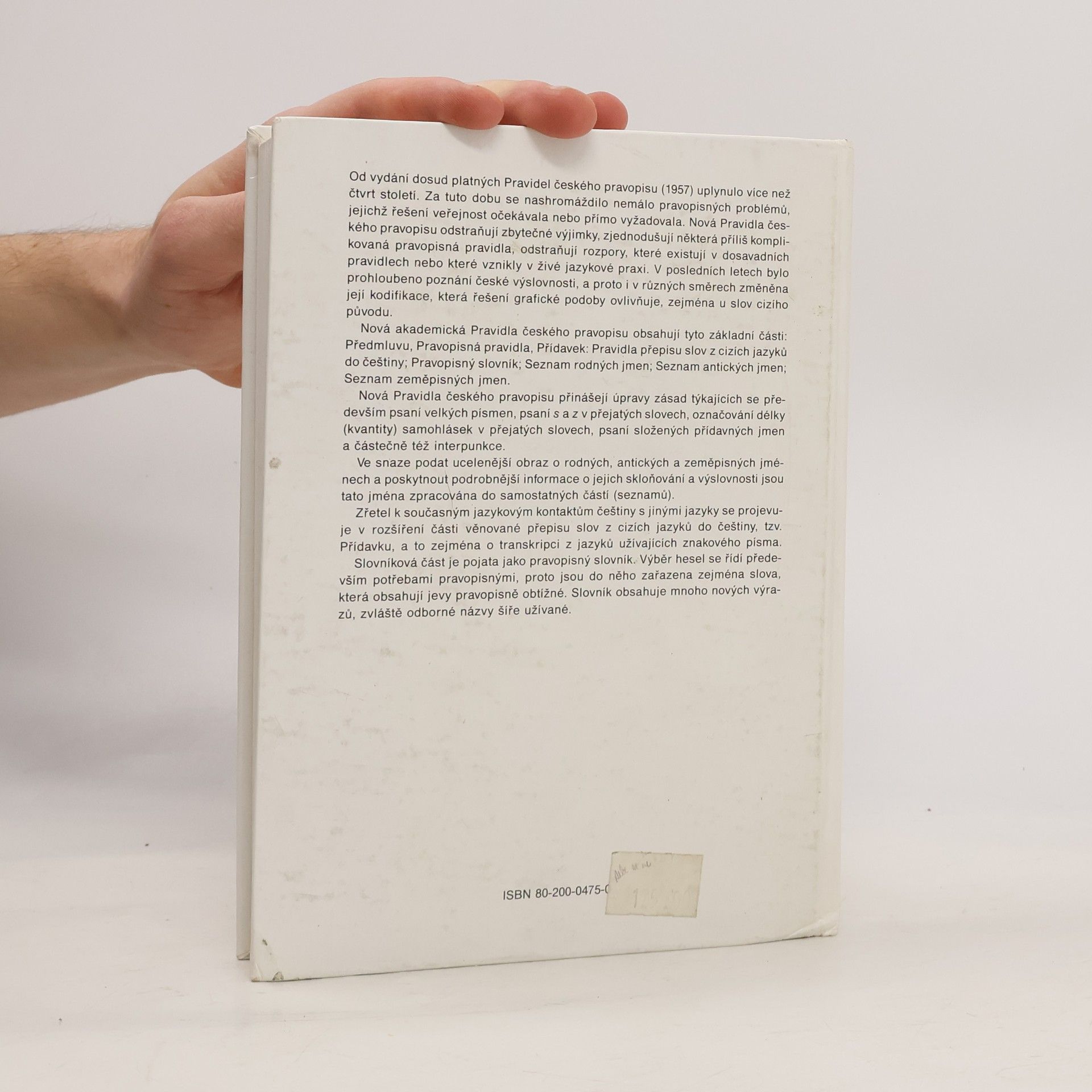 Nová Pravidla českého pravopisu obsahují tyto základní části: Předmluvu, Pravopisná pravidla, Přídavek - Pravidla přepisu slov z cizích jazyků do češtiny, Pravopisný slovník, Seznam rodných jmen, Seznam antických jmen, Seznam zeměpisných jmen. Přinášejí úpravy zásad týkajících se psaní velkých písmen, psaní s a z v přejatých slovech, označování délky samohlásek v přejatých slovech, psaní složených přídavných jmen a též interpunkce.