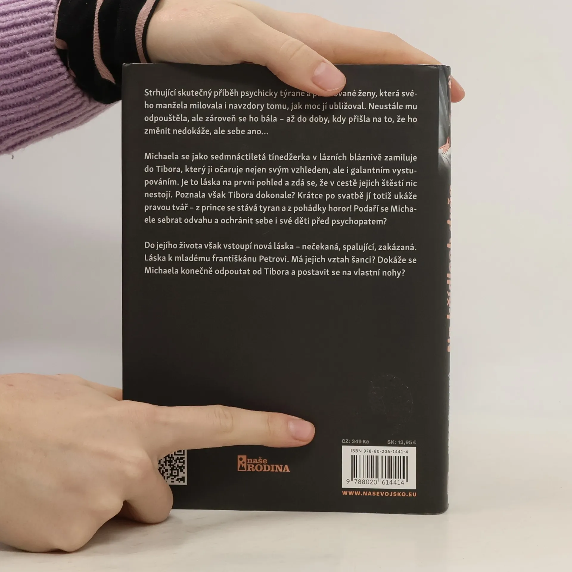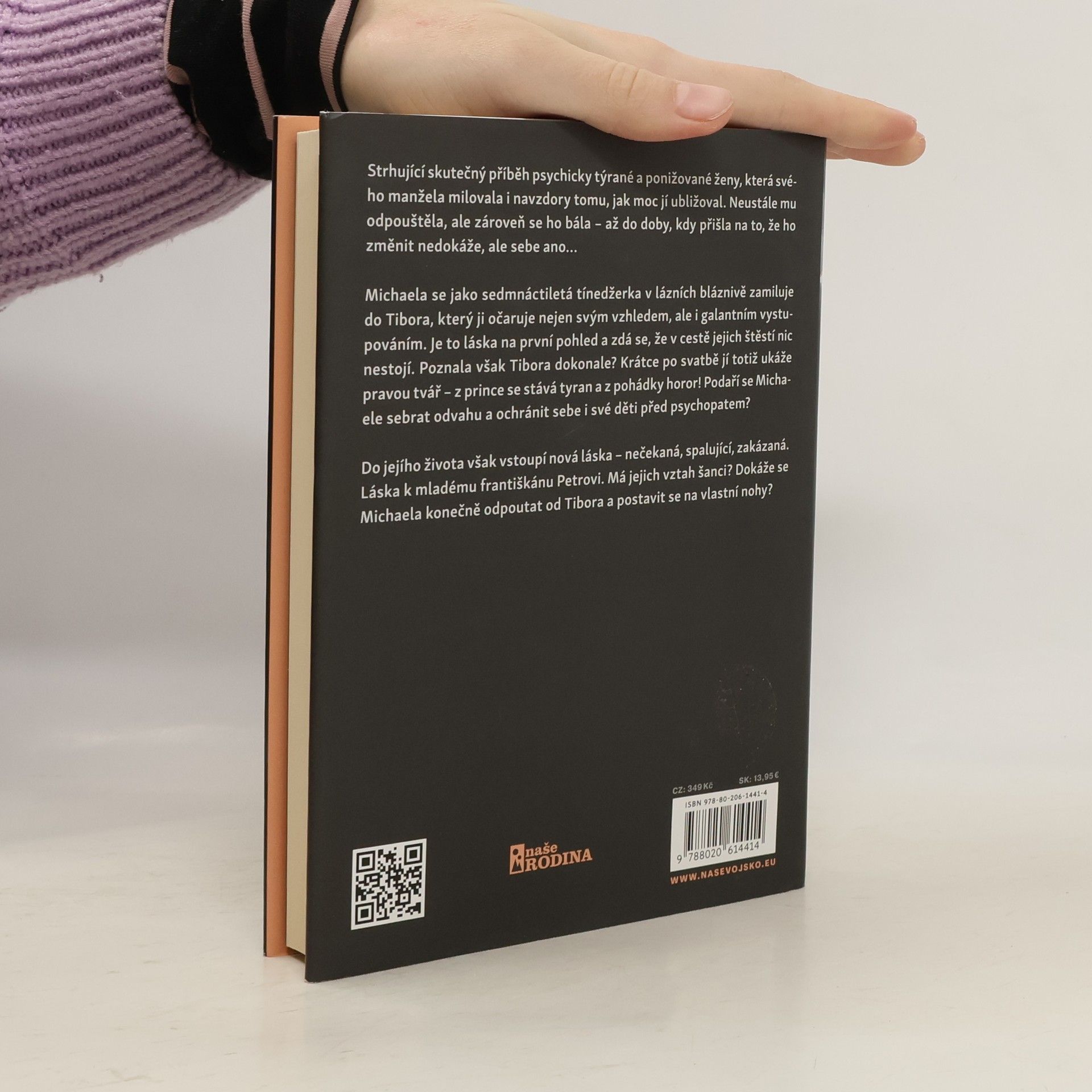 Strhující skutečný příběh psychicky týrané a ponižované ženy, která svého manžela milovala i navzdory tomu, jak moc jí ubližoval. Neustále mu odpouštěla, ale zároveň se ho bála – až do doby, kdy přišla na to, že ho změnit nedokáže, ale sebe ano… Michaela se jako sedmnáctiletá tínedžerka v lázních bláznivě zamiluje do Tibora, který ji očaruje nejen svým vzhledem, ale i galantním vystupováním. Je to láska na první pohled a zdá se, že v cestě jejich štěstí nic nestojí. Poznala však Tibora dokonale? Krátce po svatbě jí totiž ukáže pravou tvář – z prince se stává tyran a z pohádky horor! Podaří se Michaele sebrat odvahu a ochránit sebe i své děti před psychopatem? Do jejího života však vstoupí nová láska – nečekaná, spalující, zakázaná. Láska k mladému františkánu Petrovi. Má jejich vztah šanci? Dokáže se Michaela konečně odpoutat od Tibora a postavit se na vlastní nohy?