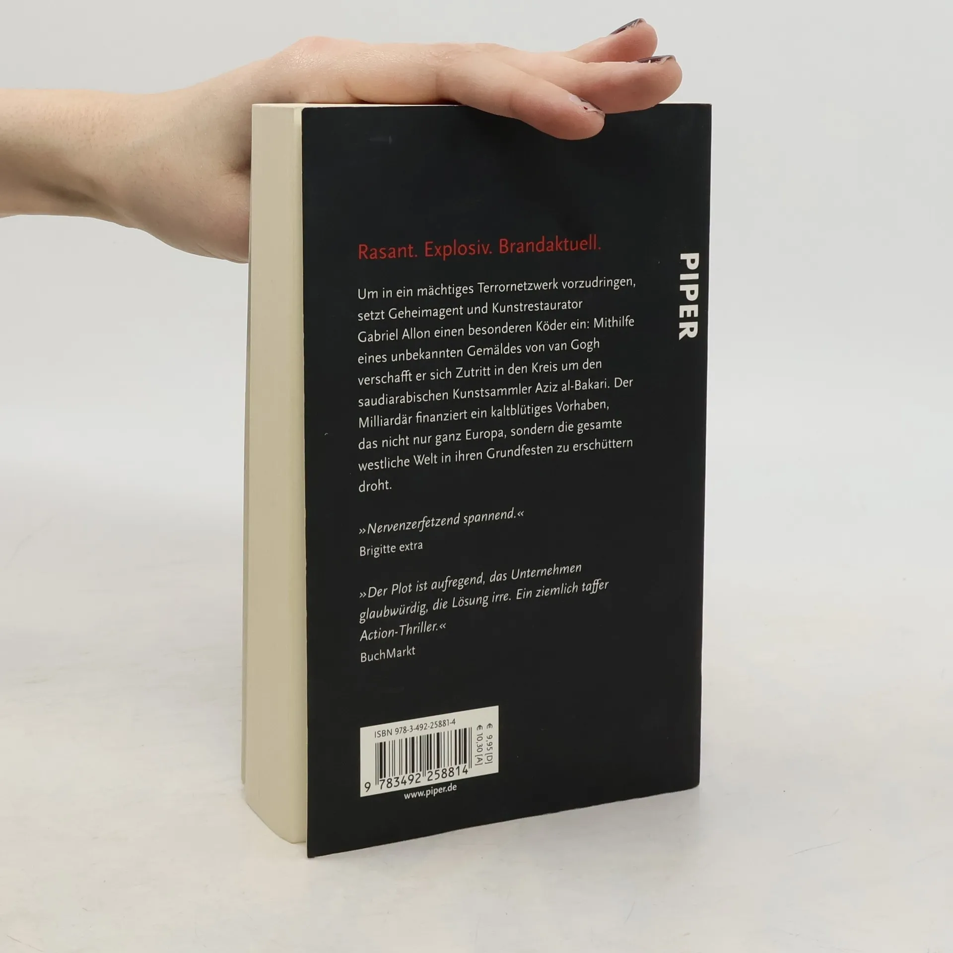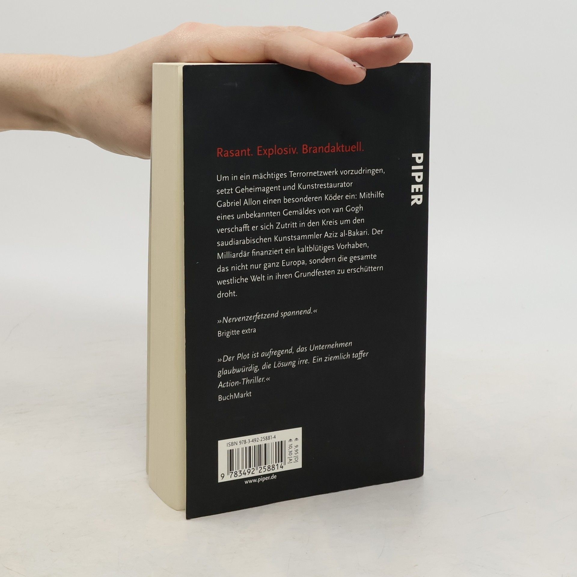 Um in ein mächtiges Terrornetzwerk vorzudringen, setzt Geheimagent und Kunstrestaurator Gabriel Allon einen besonderen Köder ein: Mithilfe eines unbekannten Gemäldes von Vincent van Gogh verschafft er sich Zutritt in den Kreis um den saudi-arabischen Kunstsammler Aziz al-Bakari. Der Milliardär finanziert ein kaltblütiges Vorhaben, das nicht nur ganz Europa, sondern die gesamte westliche Welt in ihren Grundfesten zu erschüttern droht.
