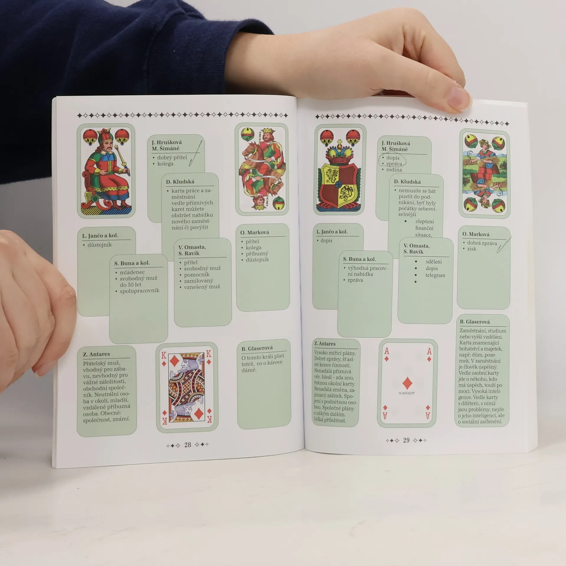 Chcete se naučit vykládat karty? Nyní máte šanci. Autorka knížky Marie Hollitzerová, která se již mnoho let věnuje ezoterice, spiritismu a výkladu z karet, sestavila pro zájemce určitý přehled týkající se významu dvaatřiceti mariášových karet a také žolíkových karet podle autorů některých publikací. Sama zastává názor, že vykládání se musí naučit každý, a pro-to se snaží předat všem co možná nejvíce zkušeností, které si sama ověřila praxí.