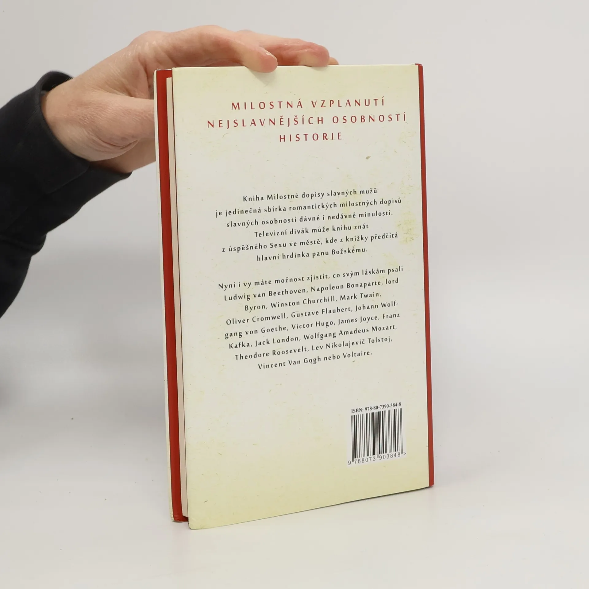 Milostné dopisy slavných mužů, díl první, je sbírka romantických milostných dopisů slavných osobností minulosti i současnosti. Když Carrie Bradshaw, hrdinka seriálu a filmu Sex ve městě, z této krásné sbírky předčítala Panu Božskému, miliony žen po celém světě začaly tuto knížku shánět. Nyní máte možnost i Vy přečíst si romantické milostné dopisy, které napsali slavní muži jako Ludwig van Beethoven, Napolean Bonaparte, Robert Browning, Lord Byron, Lord Randolph Churchill, Winston Churchill, Mark Twain, Oliver Cromwell, F. Scott Fitzgerald, Gustave Flaubert, Johann Wolfgang von Goethe, Victor Hugo, James Joyce, Franz Kafka, John Keats, Jack London, Wolfgang Amadeus Mozart, Theodore Roosevelt, Jr., George Bernard Shaw, Lev Nikolajevič Tolstoj, Vincent Van Gogh, Voltaire a další.