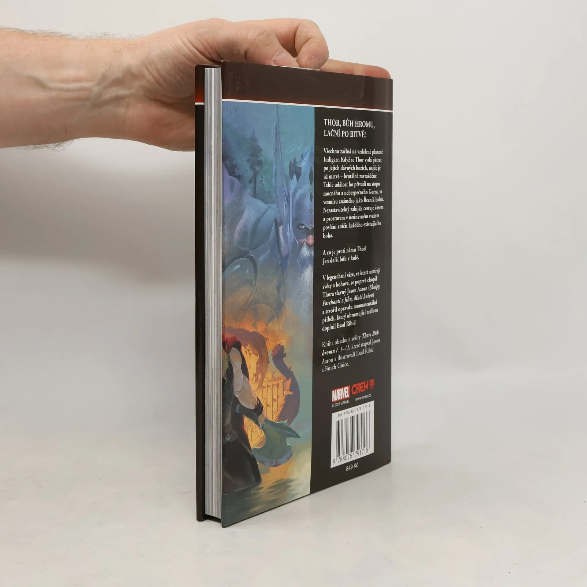 THOR, BŮH HROMU, LAČNÍ PO BITVĚ! Ale jeho největší bitva zuří už po víc než čtrnáct miliard let! Gorr cestuje časem a prostorem v neúnavném poslání zničit každého existujícího boha. V daleké budoucnosti Řezník bohů zabil nebo zotročil celý asgardský pantheon, až na jednoho. Král Thor stále žije, ale jen proto, že Gorrovi dělá dobře ho mučit a trýznit! Bude společná síla třech Thorů cestujících časem stačit k poražení šílence, který zavraždil miliardy bohů? Kniha obsahuje sešity Thor: Bůh hromu č. 1–11, které napsal Jason Aaron a ilustrovali Esad Ribić a Butch Guice.