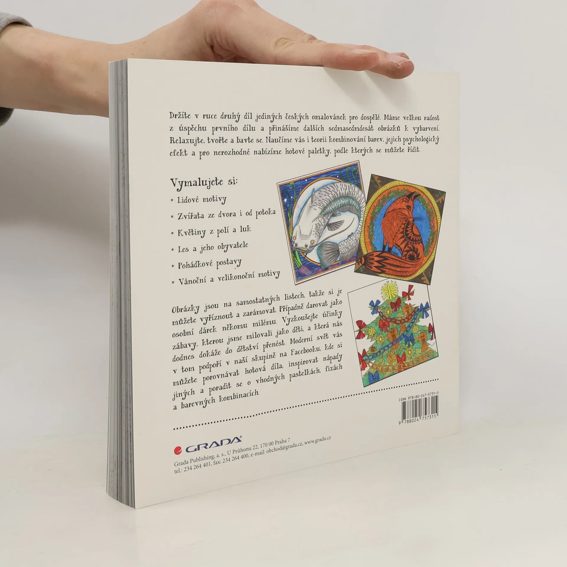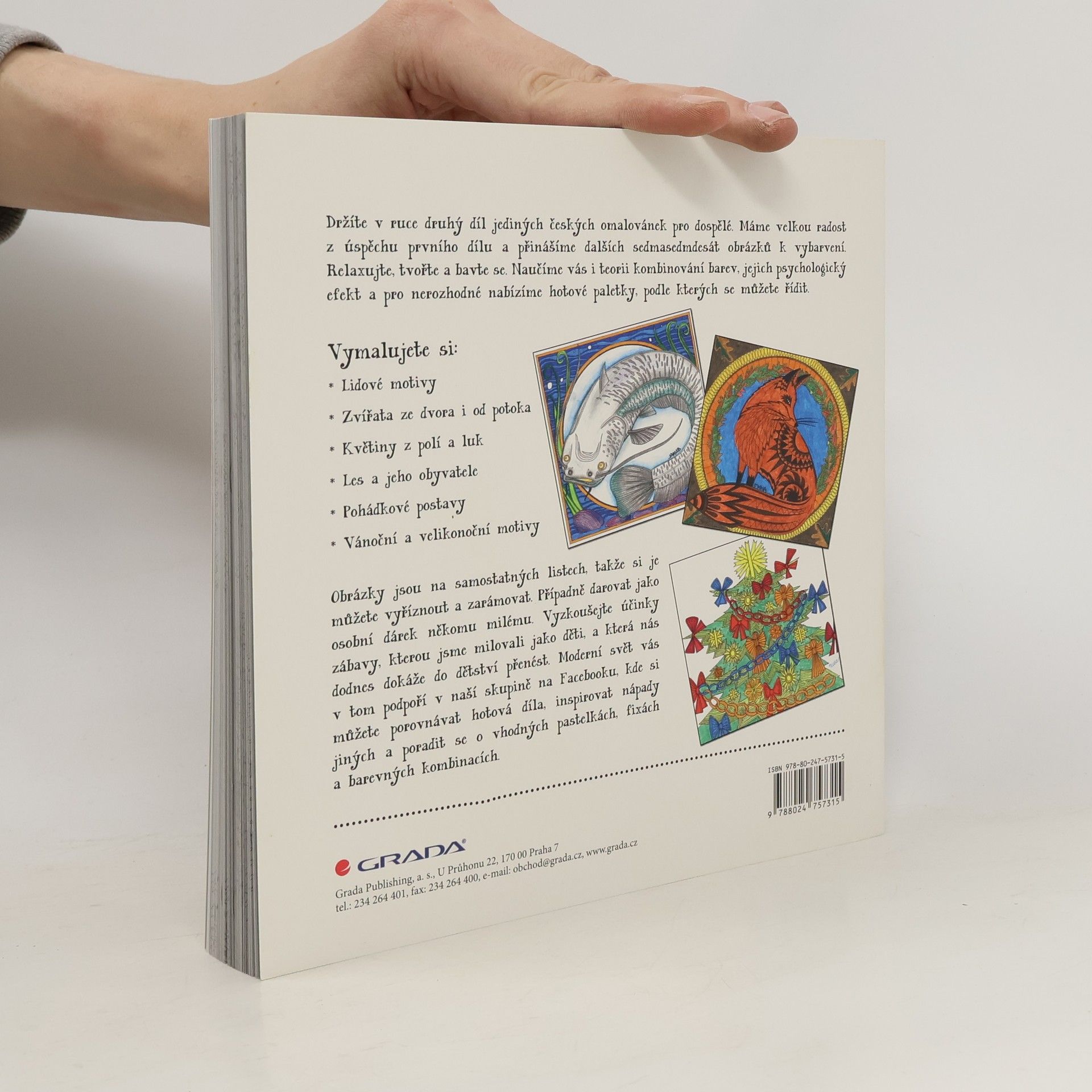 Zbavte se stresu s druhým dílem oblíbených omalovánek pro dospělé! 77 obrázků k vybarvení od Jolany Daňkové a osvěžující fejetony Lenky Tréglové vám přinesou mnoho hodin odreagování se od starostí. Potěší vás obrázky z českých dvorků, lesů a potoků, ale také vánoční, velikonoční a pohádkové motivy. Nemusíte umět kreslit, a přesto můžete vytvořit krásné umělecké dílo. Inspirujte se na Facebooku ve skupině Antistresové omalovánky pro dospělé.