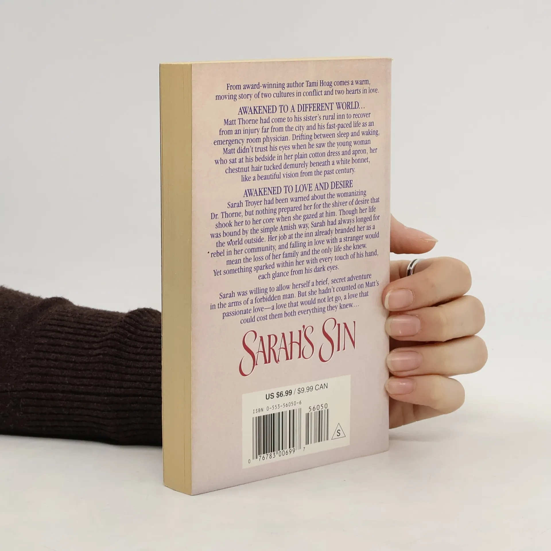 From award-winning author Tami Hoag comes a warm, moving story of two cultures in conflict and two hearts in love.Matt Thorne had come to his sister's rural inn to recover from an injury far from the city and his fast-paced life as an emergency room physician. Drifting between sleep and waking, Matt didn't trust his eyes when he saw the young woman who sat at his bedside in her plain cotton dress and apron, her chestnut hair tucked demurely beneath a white bonnet, like a beautiful vision from the past century.Sarah Troyer had been warned about the womanizing Dr. Throne, but nothing prepared her for the shiver of desire that shook her to her core when she gazed at him. Though her life was bound by the simple Amish way, Sarah had always longed for the world outside. Her job at the inn already branded her as a rebel in her community, and falling in love with a stranger would mean the loss of her family and the only life she knew. Yet something sparked within her with every touch of his hand, each glance from his dark eyes.Sarah was willing to allow herself a brief, secret adventure in the arms of a forbidden man. But she hadn't counted on Matt's passionate love—a love that would not let go, a love that could cost them both everything they knew....