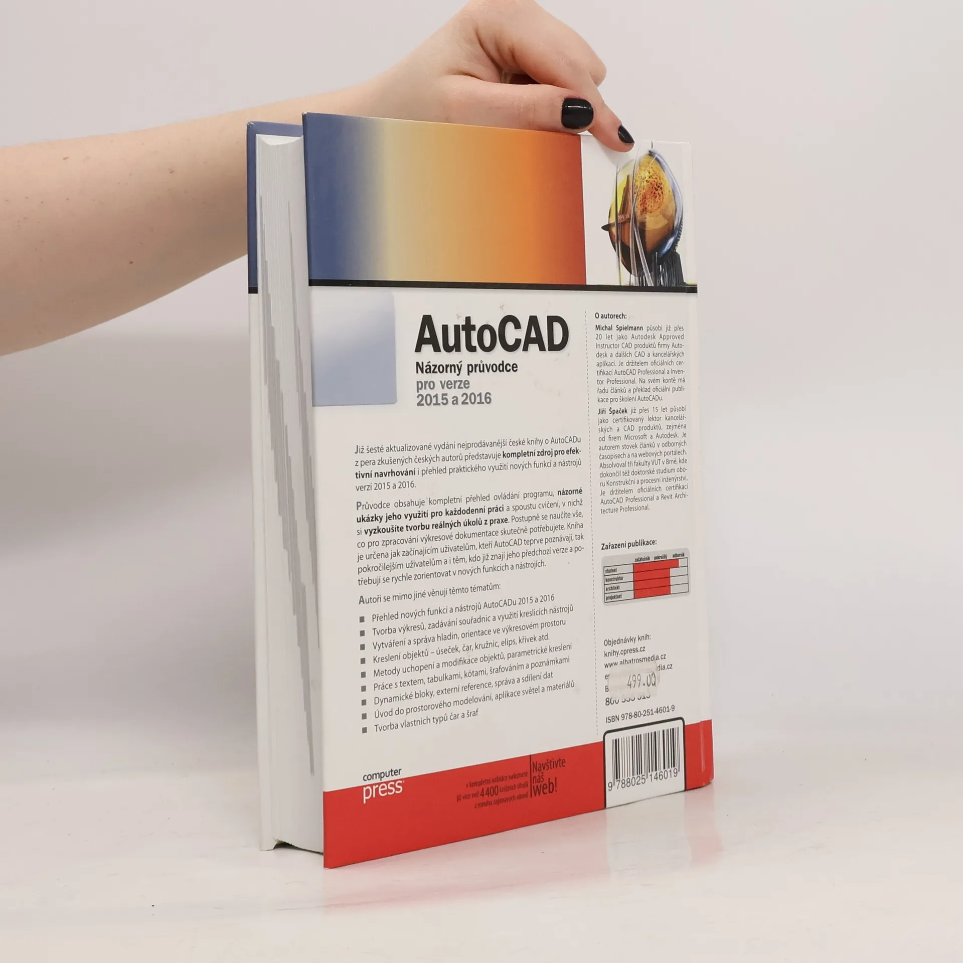 Již šesté aktualizované vydání nejprodávanější české knihy o AutoCADu z pera zkušených českých autorů představuje kompletní zdroj pro efektivní navrhování i přehled praktického využití nových funkcí a nástrojů verzí 2015 a 2016. Průvodce obsahuje kompletní přehled ovládání programu, názorné ukázky jeho využití pro každodenní práci a spoustu cvičení, v nichž si vyzkoušíte tvorbu reálných úkolů z praxe. Postupně se naučíte vše, co pro zpracování výkresové dokumentace skutečně potřebujete. Kniha je určena jak začínajícím uživatelům, kteří AutoCAD teprve poznávají, tak pokročilejším uživatelům a i těm, kdo již znají jeho předchozí verze a potřebují se rychle zorientovat v nových funkcích a nástrojích. Autoři se mimo jiné věnují těmto tématům: - Přehled nových funkcí a nástrojů AutoCADu 2015 a 2016 - Tvorba výkresů, zadávání souřadnic a využití kreslicích nástrojů - Vytváření a správa hladin, orientace ve výkresovém prostoru - Kreslení objektů – úseček, čar, kružnic, elips, křivek atd. - Metody uchopení a modifikace objektů, parametrické kreslení - Práce s textem, tabulkami, kótami, šrafováním a poznámkami - Dynamické bloky, externí reference, správa a sdílení dat - Úvod do prostorového modelování, aplikace světel a materiálů - Tvorba vlastních typů čar a šraf