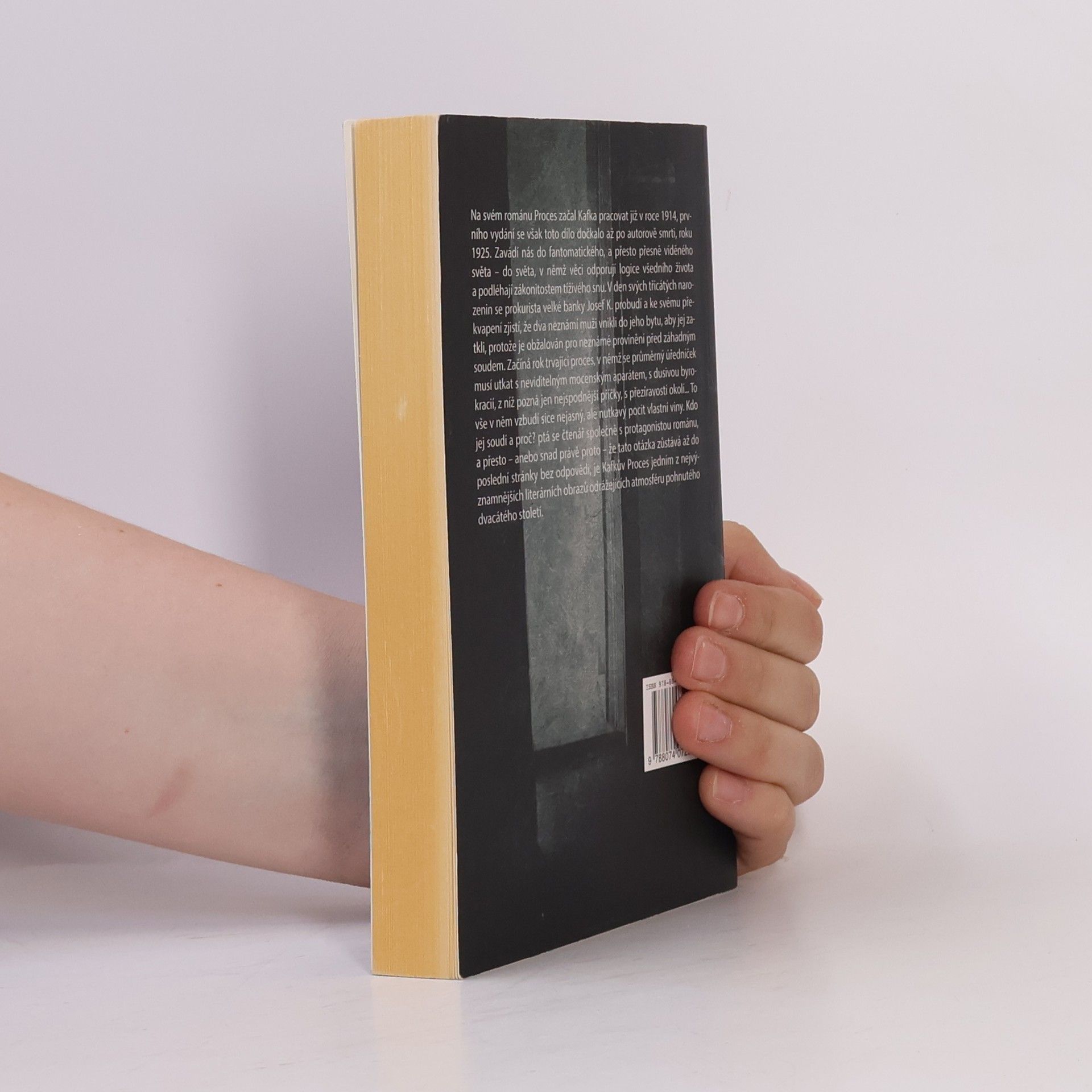 Na svém románu Proces začal Kafka pracovat již v roce 1914, prvního vydání se však toto dílo dočkalo až po autorově smrti, roku 1925. Zavádí nás do fantomatického, a přesto přesně viděného světa - do světa, v němž věci odporují logice všedního života a podléhají zákonitostem tíživého snu. V den svých třicátých narozenin se prokurista velké banky Josef K. probudí a ke svému překvapení zjistí, že dva neznámí muži vnikli do jeho bytu, aby jej zatkli, protože je obžalován pro neznámé provinění před záhadným soudem. Začíná rok trvající proces, v němž se průměrný úředníček musí utkat s neviditelným mocenským aparátem, s dusivou byrokracií, z níž pozná jen nejspodnější příčky, s přezíravostí okolí...To vše v něm vzbudí sic enejasný, ale nutkavý pocit vlastní viny. Kdo jej soudí a proč? ptá se čtenář společně s protagonistou románu, a přesto - anebo snad právě proto -že tato otázka zůstává až do poslední stránky bez odpovědi, je Kafkův Proces jedním z nejvýznamnějších literáráních obrazů odrážejících atmosféru pohnutého dvacátého století.