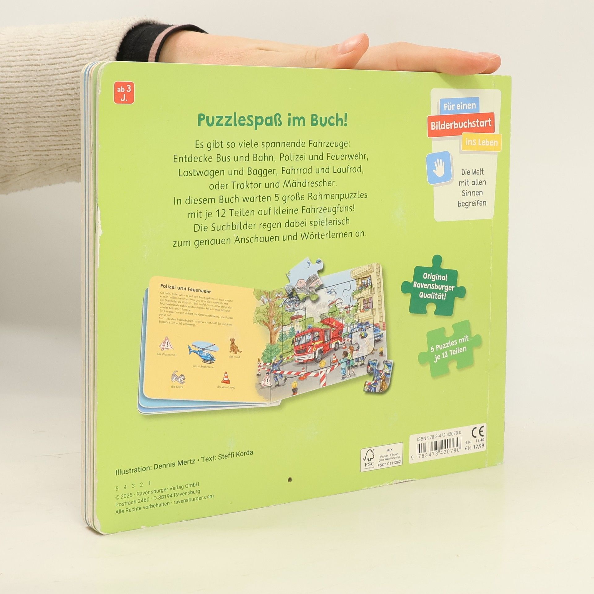 Ravensburger Puzzle-Buch: Fahrzeuge - Kinderbuch ab 3 Jahren, Puzzle mit 12 Teilen, Spielbuch, Wimmelbuch, Pappbilderbuch, Steffi Korda