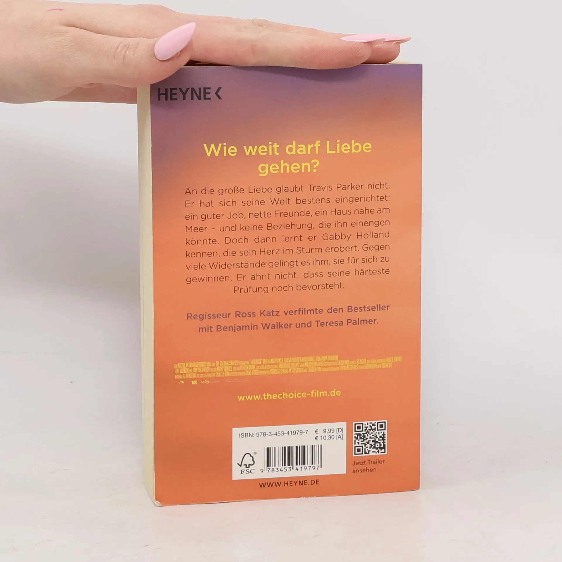 Wie weit darf Liebe gehen? An die große Liebe glaubt Travis Parker nicht. Er hat sich seine Welt bestens eingerichtet: ein guter Job, nette Freunde, ab und an eine kleine Affäre. Doch dann lernt der überzeugte Junggeselle Gabby Holland kennen, die sein Herz im Sturm erobert. Gegen viele Widerstände gelingt es ihm, sie für sich zu gewinnen. Er ahnt nicht, dass seine härteste Prüfung noch bevorsteht.