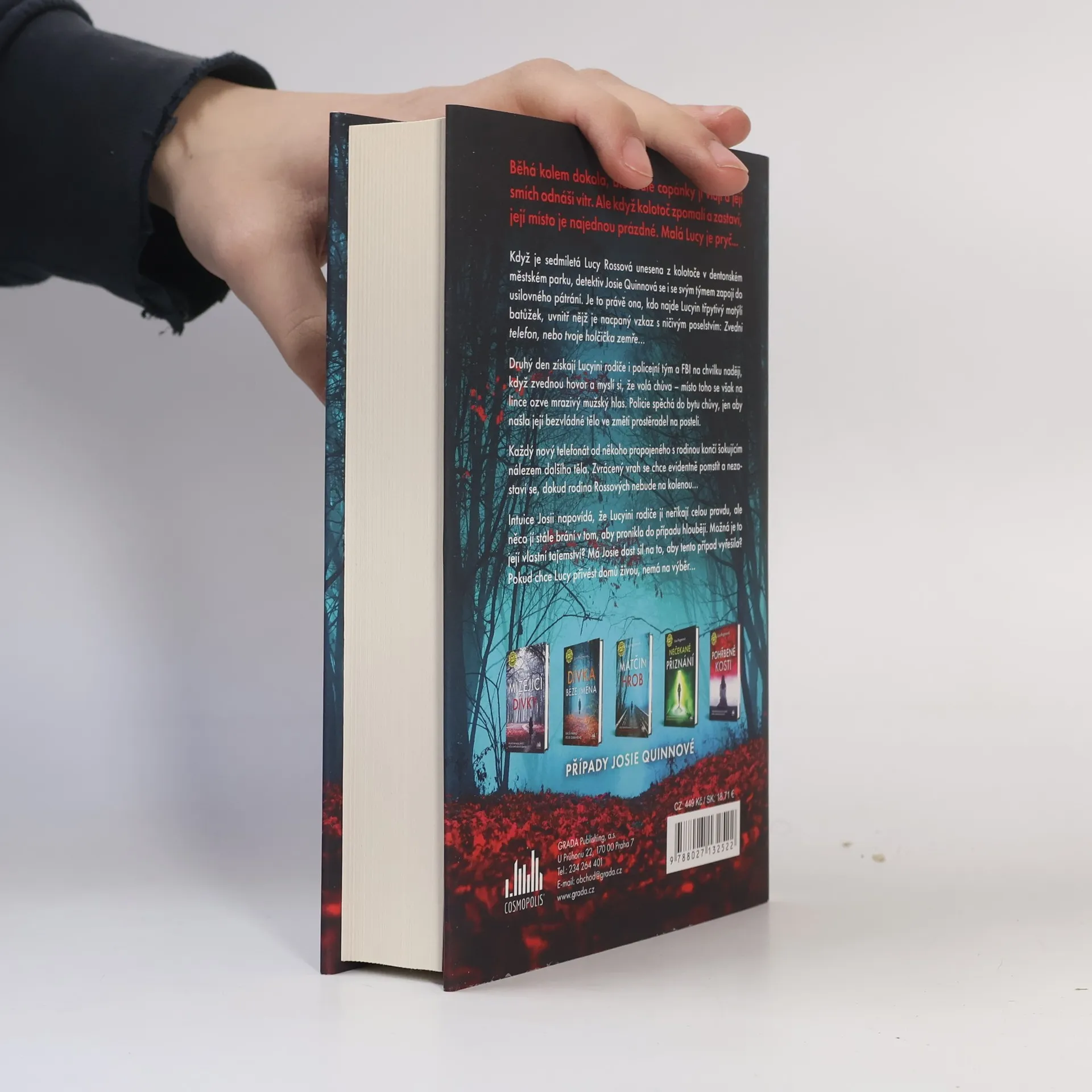Když je sedmiletá Lucy Rossová unesena z kolotoče v dentonském městském parku, detektiv Josie Quinnová se i se svým týmem zapojí do usilovného pátrání. Je to právě ona, kdo najde Lucyin třpytivý motýlí batůžek, uvnitř nějž je nacpaný vzkaz s ničivým poselstvím: Zvedni telefon, nebo tvoje holčička zemře... Druhý den získají Lucyini rodiče i policejní tým a FBI na chvilku naději, když zvednou hovor a myslí si, že volá chůva – místo toho se však na lince ozve mrazivý mužský hlas. Policie spěchá do bytu chůvy, jen aby našla její bezvládné tělo ve změti prostěradel na posteli. Každý nový telefonát od někoho propojeného s rodinou končí šokujícím nálezem dalšího těla. Zvrácený vrah se chce evidentně pomstít a nezastaví se, dokud rodina Rossových nebude na kolenou... Intuice Josii napovídá, že Lucyini rodiče jí neříkají celou pravdu, ale něco jí stále brání v tom, aby pronikla do případu hlouběji. Možná je to její vlastní tajemství? Má Josie dost sil na to, aby tento případ vyřešila? Pokud chce Lucy přivést domů živou, nemá na výběr...