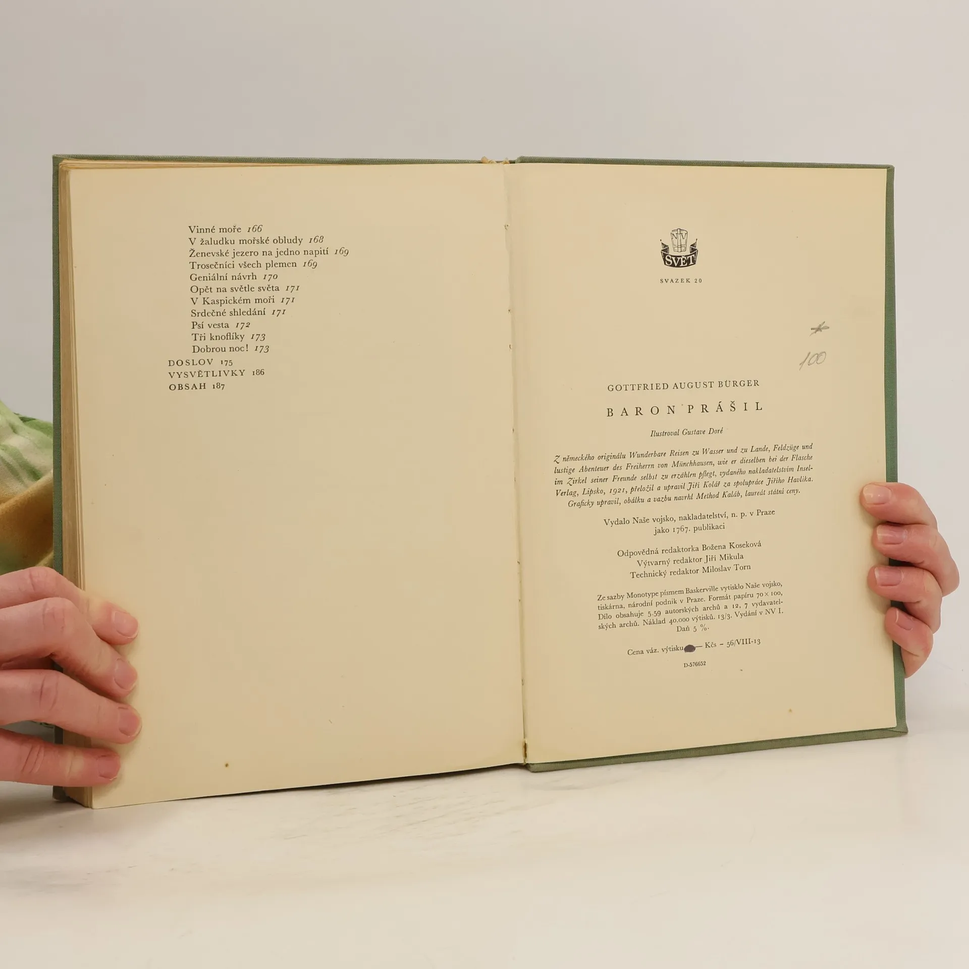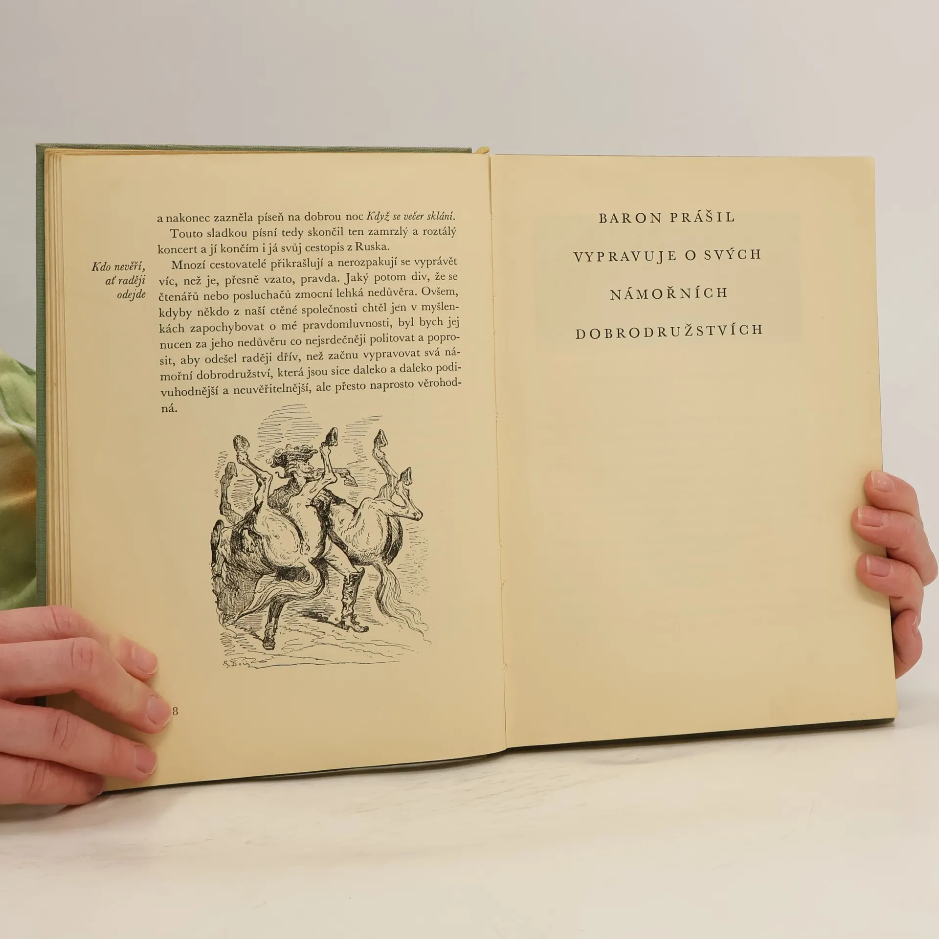 Svět chce být klamán, říká známé přísloví a kdoví, zda není jeho tvůrcem sám baron Prášil, nekorunovaný král všech lhářů. Byl-li pan baron z Münchhausenu - česky baron Prášil notorický lhář a šejdíř či jen blouznivý fantasta a rozený řečník, bohužel nevíme. Tak jako Haškův "Dobrý voják Švejk" by nebyl bez Švejkem bez Lady, tak pro dnešního čtenáře, citlivého stejně na obsah i úpravu knihy, přispívá k přitažlivosti a kouzlu historek prolhaného barona stejnou měrou i grafický doprovod Gustava Doré, nejpopulárnějšího z romantických ilustrátorů. Přeložil Jiří Kolář. Vydala Academia roku 2000, edice Reprint.