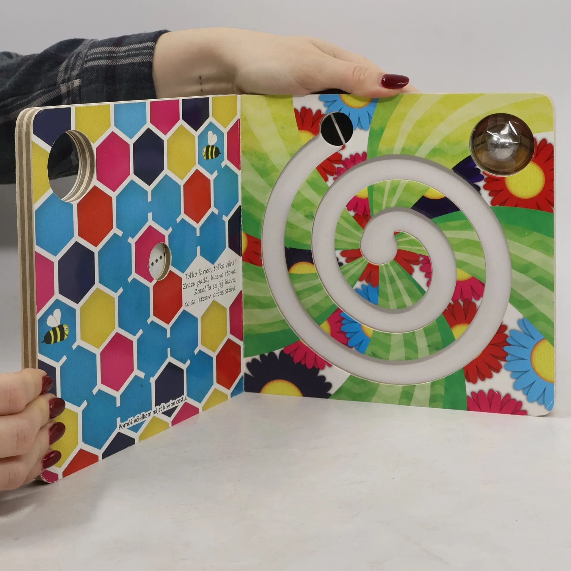 Interaktívna knižka, pomocou ktorej si deti trénujú jemnú motoriku. Vyberte sa s včielkou na jej prvé veľké dobrodružstvo. Pomocou guľôčky jej pomôžte opeľovať kvety, prekonávať rôzne nástrahy a na konci dňa sa vrátiť naspäť do úľa.