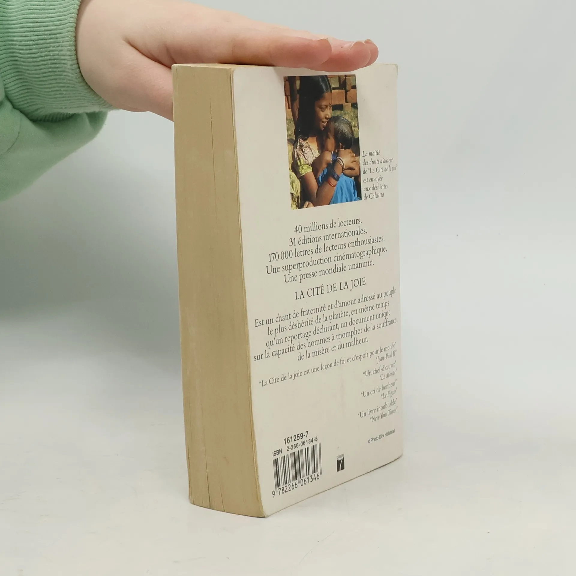Un prêtre catholique français, un jeune médecin américain, une infirmière et un tireur de pousse-pousse indien se rencontrent sous les cataractes de la mousson. Ils s'installent dans l'hallucinant décor d'un quartier de Calcutta pour soigner, aider, sauver. Condamnés à être des héros, ils vont se battre, lutter, vaincre. Au milieu des inondations, des rats, des scorpions, des eunuques, des dieux, des fêtes et des soixante-dix mille "lumières du monde" qui peuplent la Cité de la joie. Leur épopée est un chant d'amour, un hymne à la vie, une leçon de tendresse et d'espérance pour tous les hommes de notre temps. La Cité de la joie a déjà été lue par trente millions de lecteurs et traduite dans trente et une langues. Récompensé par le prestigieux Christopher Award américain, adapté au cinéma par Roland Joffé, le livre de Dominique Lapierre a reçu l'éloge de la presse mondiale.