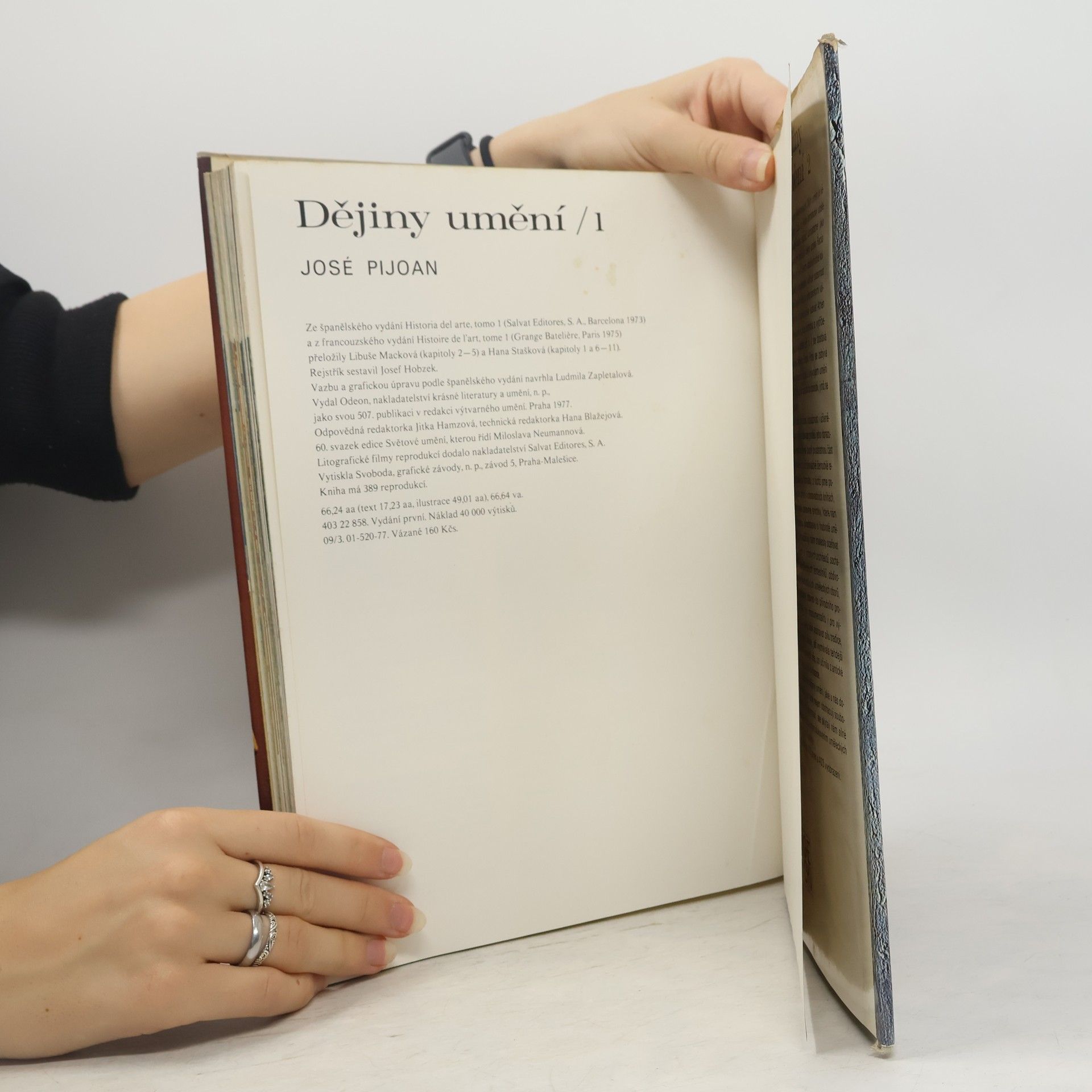 Toto rozsáhlé encyklopedické dílo čtenáře postupně seznámí s poklady světového umění. Opírá se o proslulé dějiny Josého Pijoana, které vyšly před téměř 70 lety. Čtenáři, milovníci umění, ocení bohatství obrazové dokumentace, na níž je dílo založeno. Vynikající barevné reprodukce představují jednotlivé kultury, epochy, umělecké proudy a osobnosti. Desetidílné Dějiny umění jsou určeny širokému okruhu zájemců o výtvarnou kulturu a kulturní historii. První svazek zavede čtenáře do samých počátků výtvarné tvorby v hlubinách pravěku, za kulturou starého Egypta a Íránu, za uměním sumerským, akkadským, babylonským a asyrským i za památkami předkolumbovské Ameriky.