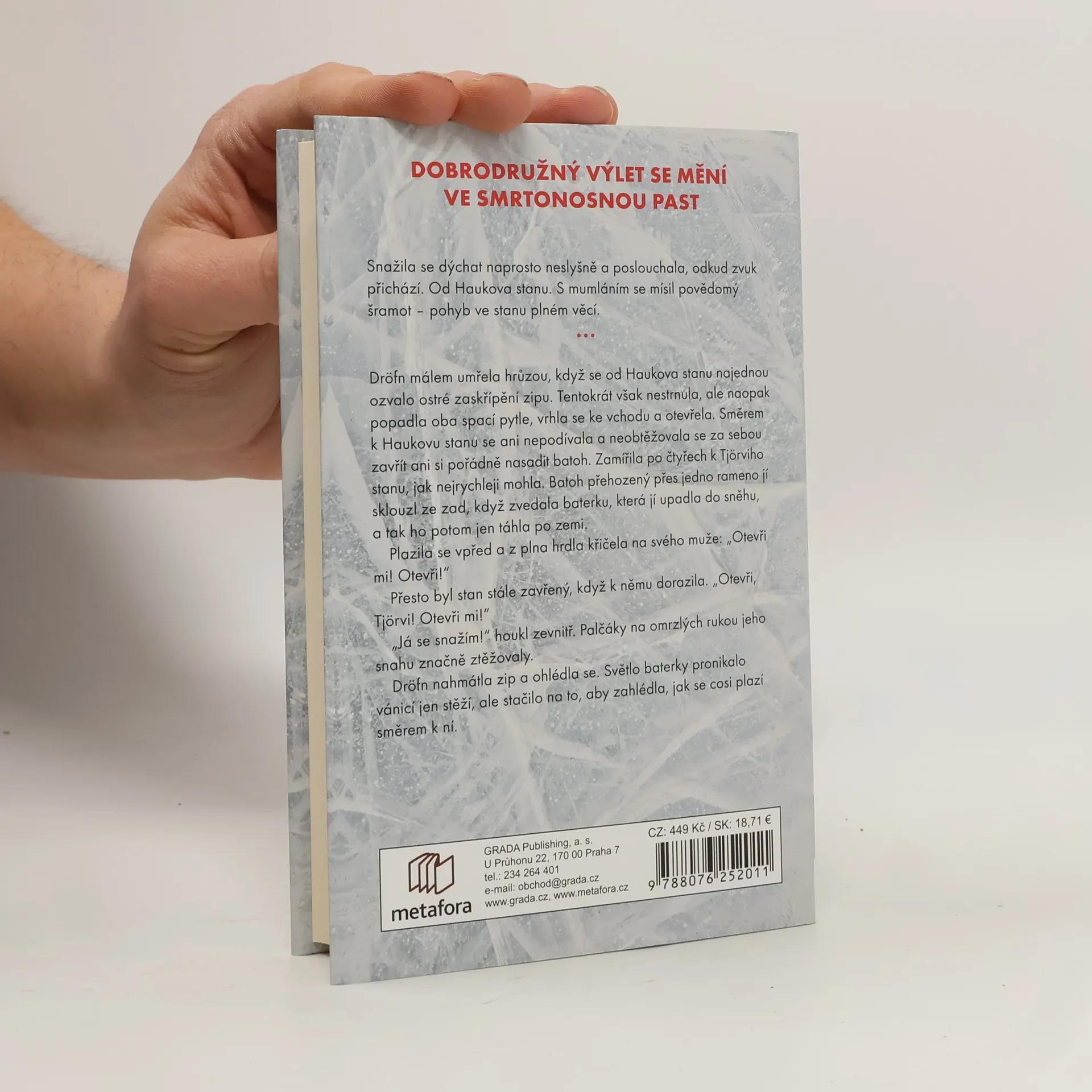 V nehostinných podmínkách islandské ledové pustiny se ztratí čtyřčlenná skupinka turistů. Co je přimělo vyrazit za tak drsných podmínek zcela mimo civilizaci? A proč opustili bezpečí srubu takřka nazí? Záchranářka Johanna a její kolegové z pátracícho týmu jsou povoláni do akce a narážejí na velice podivné stopy. Na osamocené radarové stanici na pobřeží Stokksnes mezitím dochází k nevysvětlitelným, hrůzu nahánějícím událostem. Rudá kaluž krve uprostřed nedotčeného sněhu, dětská botička pohřbená desítky let pod zemí, život dobrovolně ukončený v mořských vodách hluboké skalní průrvy. Sníh nepřestává padat a tajemných událostí přibývá, jako by je mrazivé počasí přitahovalo… Po skončení série Freyja & Huldar přichází Yrsa Sigur?ardóttir s děsivě obrazným příběhem plným bizarních nevysvětlitelných jevů, zasazeným do nejopuštěnější islandské divočiny, ze které bez ohledu na počasí ucítíte mráz pod kůží.