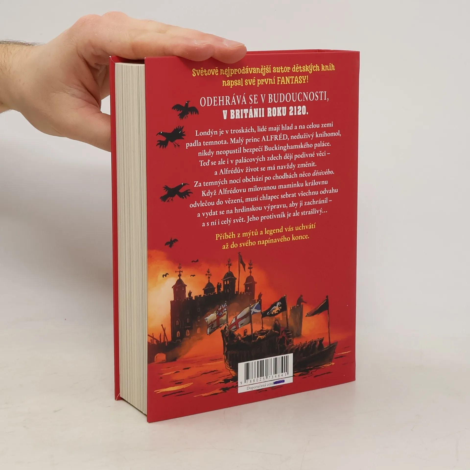 Světově nejprodávanější autor dětských knih napsal své první fantasy! Odehrává se v Británii o sto let později, tedy v roce 2120. Londýn je v troskách, lidé mají hlad a na celou zemi padla temnota. Malý princ Alfréd, neduživý knihomol, nikdy neopustil bezpečí Buckinghamského paláce. Teď se ale i v palácových zdech dějí podivné věci - a Alfrédův život se má navždy změnit. Za temných nocí obchází po chodbách něco strašlivého. Když Alfrédovu milovanou maminku královnu odvlečou do Toweru, musí chlapec sebrat všechnu odvahu a vydat se na hrdinskou výpravu, aby ji zachránil - a s ní i celý svět. Jeho protivník je ale strašlivý. Příběh z mýtů a legend vás uchvátí až do svého napínavého konce. . Knihu opět ilustroval báječný Tony Ross.