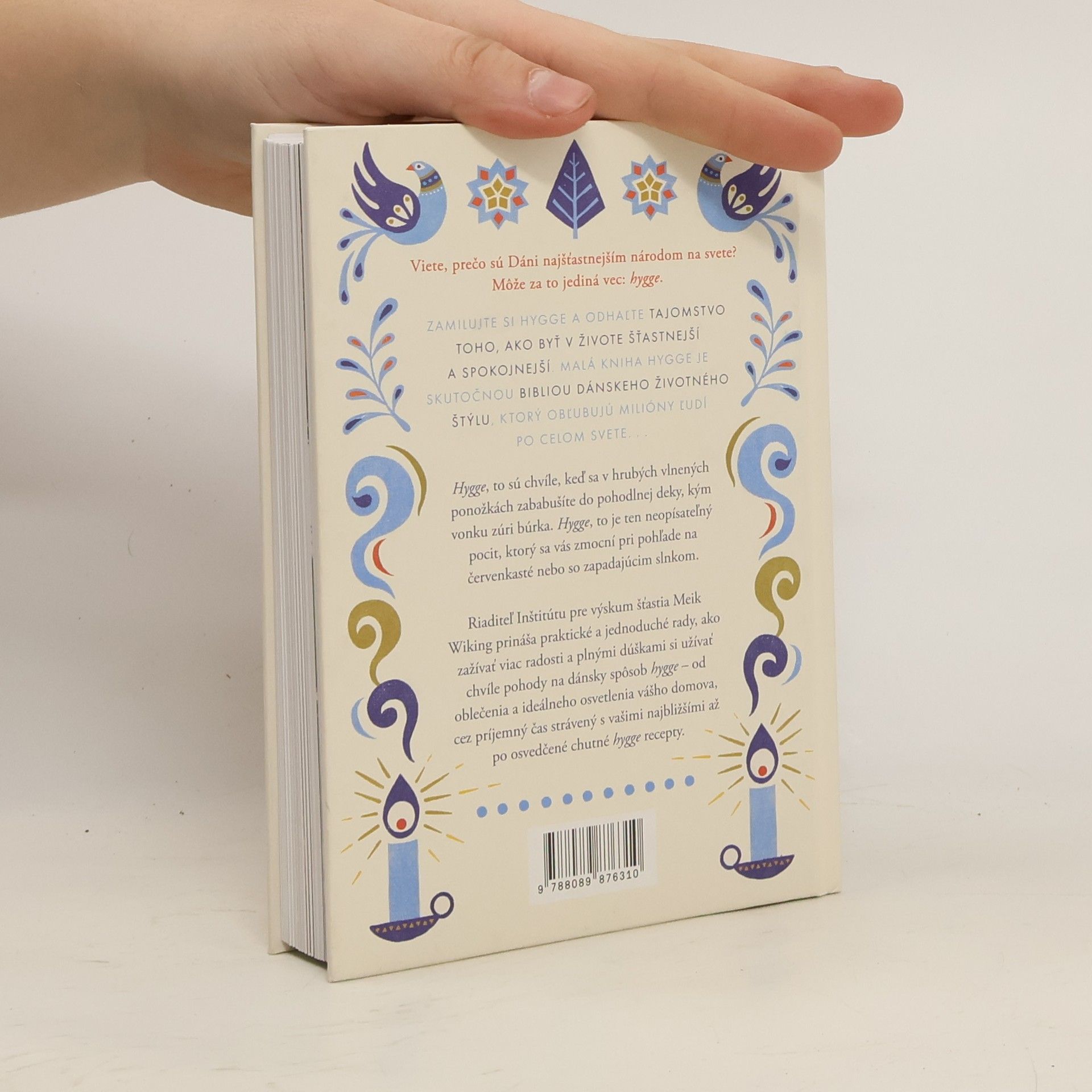 Viete, prečo sú Dáni najšťastnejším národom na svete? Ako sa im darí žiť radostne a pokojne aj v dnešných bláznivých časoch? Ich tajomstvo nie je vôbec komplikované. Spočíva v životnej filozofii s tajomným názvom hygge. Hygge, to sú chvíle, keď sa v hrubých vlnených ponožkách zababušíte do pohodlnej deky, kým vonku zúri búrka. Hygge cítite pri tlmenom svetle sviečok, keď večeriate so svojimi blízkymi a užívate si spoločne strávené okamihy, ktoré sú jedinečné. Hygge, to je ten neopísateľný pocit, ktorý sa vás zmocní pri pohľade na červenkasté nebo so zapadajúcim slnkom. Zamilujte si hygge a odhaľte tajomstvo toho, ako byť v živote šťastnejší a spokojnejší. Malá kniha hygge je skutočnou bibliou dánskeho životného štýlu, ktorý obľubujú ľudia po celom svete. Riaditeľ Inštitútu pre výskum šťastia Meik Wiking v nej prináša praktické a jednoduché rady, ako zažívať viac radosti a plnými dúškami si užívať chvíle pohody na dánsky spôsob hygge – od ideálneho osvetlenia vášho domova, cez príjemný čas strávený s vašimi najbližšími až po osvedčené chutné hygge recepty. Malá kniha hygge vám priblíži filozofiu pohody a tepla, ktorú si veľmi ľahko osvojíte aj vy.