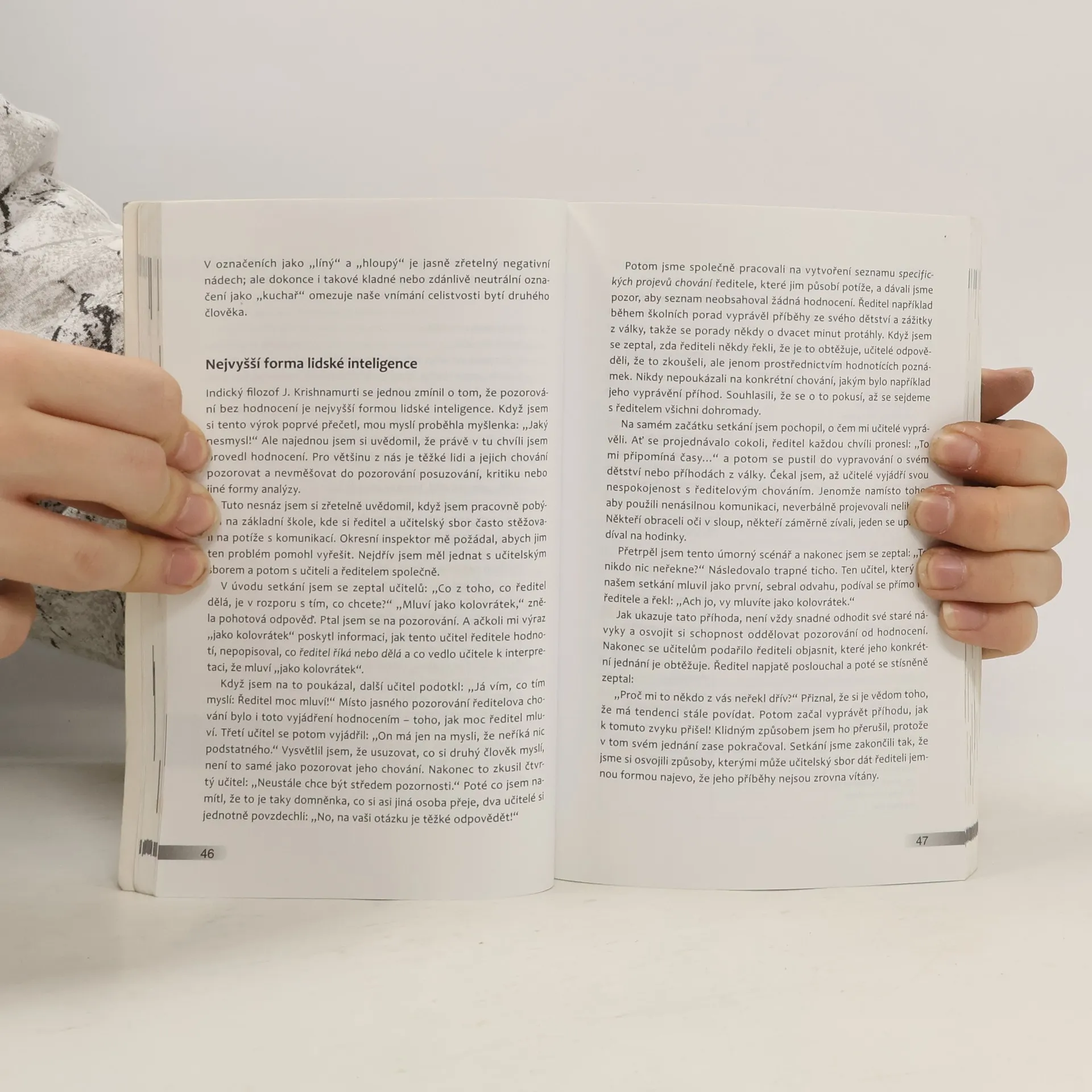 Co jsme doma slyšeli, když jsme byli malí? Buď „To je správné“ nebo „To se nedělá“. A ve škole jsme to slyšeli taky a ještě pořád to děti slyší a ty starší to už možná ani slyšet nemohou a bouří se. Naučili jsme se mluvit, ale kolikrát se setkáme s tím, že i když slova, kterými k nám někdo mluví, známe, stejně možná nechápeme, co jimi doopravdy myslí. A naopak, i když si myslíme, jak jasně se vyjadřujeme, zjistíme ke svému úžasu, že ten druhý nás vůbec nepochopil! Jak předejít nedorozuměním v komunikaci, o tom právě je tato kniha. Učí nás dávat kamarádovi, který si potřebuje postěžovat, empatickou reakci namísto, abychom jeho problém zlehčili a mysleli si, jak ho tím povzbudíme. Nejen že nás učí dopátrat se konkrétního kořene nepříliš pěkné počáteční řeči, navíc nás provede řadou čtyř kroků, jimiž dokážeme zmoci i takovou rozmluvu, která původně začala třeba provokativně. Celý koncept je totiž založen na pečlivém naslouchání – sobě i druhému. V jemných odstínech nás učí vnímat potřeby a pocity – své i toho druhého. Ukazuje nám, jak velmi záleží na jednotlivých slovech a způsobu vyjádření. Pokusíme-li se o to, co nám tato kniha nabízí, pomůže nám to překonat navyklé vzorce jednání, pomůže nám to lépe řešit problémy ve vztazích, ať už partnerských nebo ve vztazích rodiče-děti. Knihu ocení bezesporu i učitelé a vychovatelé.