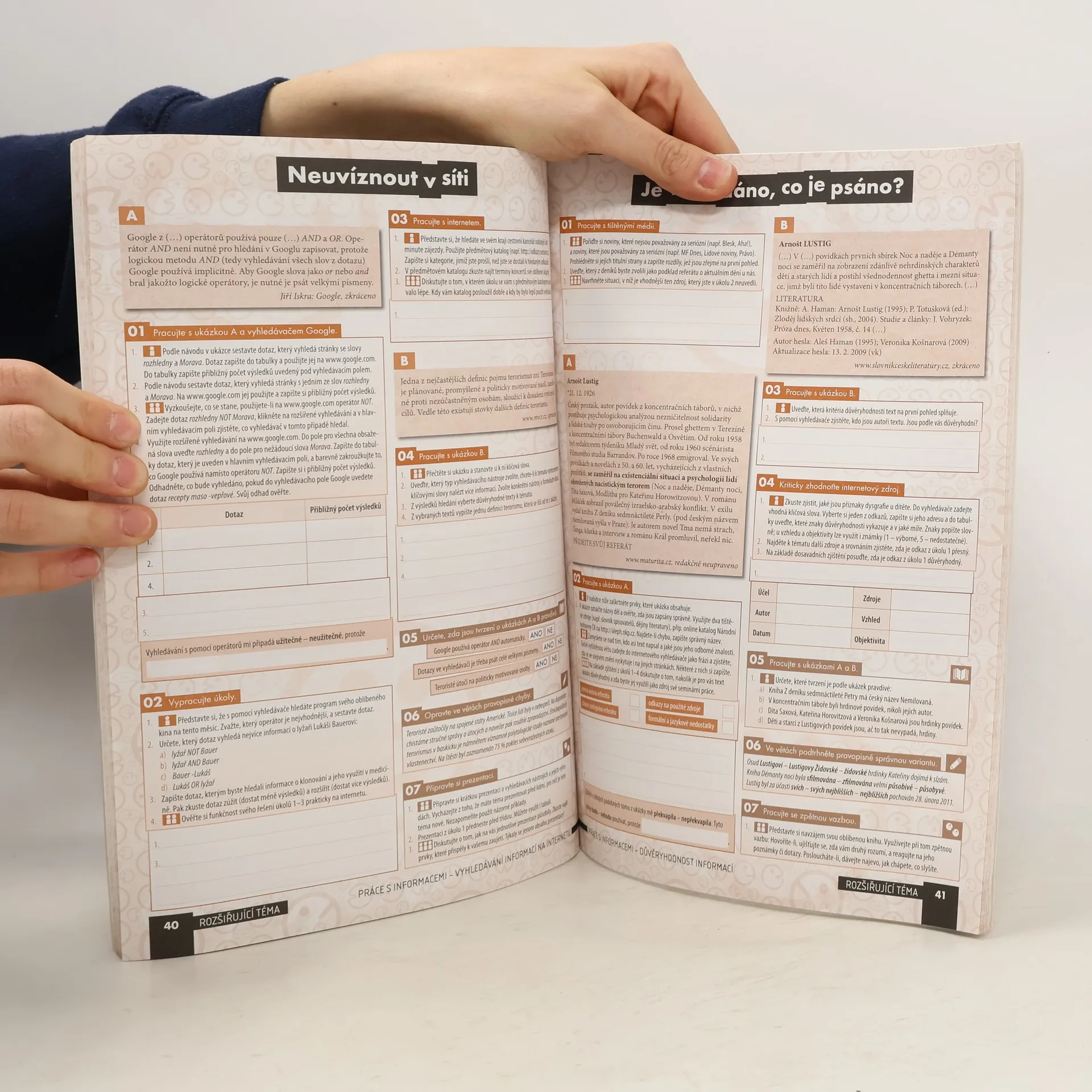 Pracovní sešit prověřuje znalosti a rozvíjí dovednosti v návaznosti na učebnici. Významně také napomáhá rozvoji klíčových kompetencí a důležitých dovedností studentů. Struktura pracovního sešitu kopíruje strukturu učebnice – jsou zde stejné tematické celky a kapitoly. Kapitola v učebnici a kapitola v pracovním sešitě přitom představuje pestrý a bohatý materiál pro vyučovací hodinu i domácí přípravu studentů. Počet úkolů je navíc lehce naddimenzovaný, takže je vždy možné vybírat úkoly vhodné pro konkrétní třídu, přizpůsobit se jejímu tempu a její úrovni. Každá kapitola obsahuje několik bloků úkolů, z nichž velká část vychází z ukázky autentického materiálu ve formě písemné, zvukové či obrazové. Úkoly jsou zaměřeny na analýzu i aplikaci a neustále nutí studenty k přemýšlení a hledání souvislostí. Jsou zde rovnoměrně zastoupeny úkoly určené pro jednotlivce, dvojice a skupiny. Kromě bloků zaměřených na aktuální látku kapitoly (s výjimkou komunikačních) obsahují také tři bloky