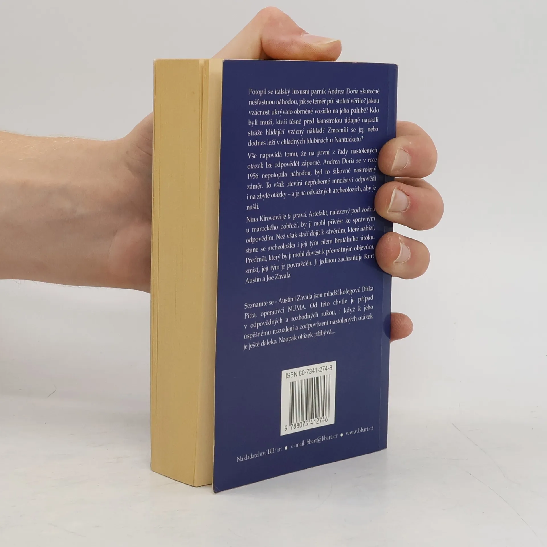 Tajemství Kolumbovy mumie a vraku lodi Andrea Doria. Potopil se italský luxusní parník Andrea Doria skutečně nešťastnou náhodou, jak se téměř půl století věřilo? Jakou vzácnost ukrývalo obrněné vozidlo na jeho palubě? Kdo byli muži, kteří těsně před katastrofou údajně napadli stráže hlídající vzácný náklad? Zmocnili se jej, nebo dodnes leží v chladných hlubinách u Nantucketu? Vše napovídá tomu, že na první z řady nastolených otázek lze odpovědět záporně. Andrea Doria se v roce 1956 nepotopila náhodou, byl to šikovně nastrojený záměr. To však otevírá nepřeberné množství odpovědí i na zbylé otázky - a je na odvážných archeolozích, aby je našli. Nina Kirovová je ta pravá. Artefakt, nalezený pod vodou u marockého pobřeží, by ji mohl přivést ke správným odpovědím. Než však stačí dojít k závěrům, které nabízí, stane se archeoložka i její tým cílem brutálního útoku. Předmět, který by ji mohl dovést k převratným objevům, zmizí, její tým je povražděn. Ji jedinou zachraňuje Kurt Austin a Joe Zavala. První brožované vydání v českém jazyce.