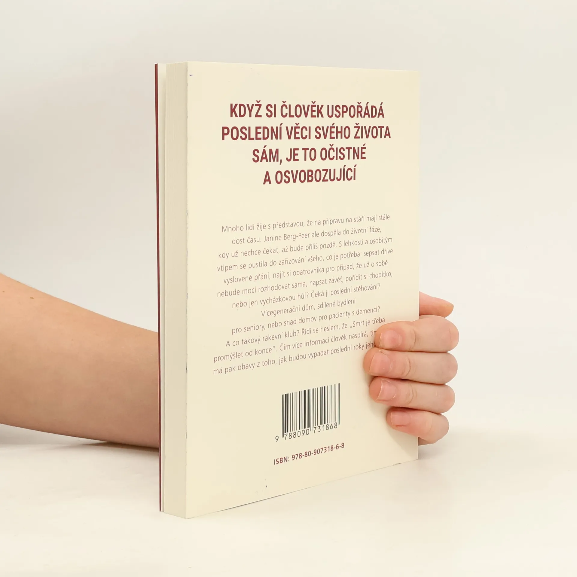 Když si člověk uspořádá poslední věci svého života, je to očistné a osvobozující. Mnoho lidí žije s představou, ze na přípravu na stáří mají stále dost času. Janine Berg-Peer ale dospěla do životní fáze, kdy už nechce čekat, až bude příliš pozdě. S lehkostí a osobitým vtipem se pustila do zařizování všeho, co je potřeba: sepsat dříve vyslovené přání, najít si opatrovníka pro případ, že už o sobě nebude moci rozhodovat sama, napsat závěť, pořídit chodítko, nebo jen vycházkovou hůl? Čeká jí poslední stěhování? Vícegenerační dům, sdílené bydlení pro seniory, nebo snad domov pro pacienty s demencí? A co takový rakevní klub? Řídí se heslem, že „Smrt je třeba promýšlet do konce“. Čím více informací člověk nasbírá, tím menší má pak obavy z toho, jak budou vypadat poslední roky jeho života.