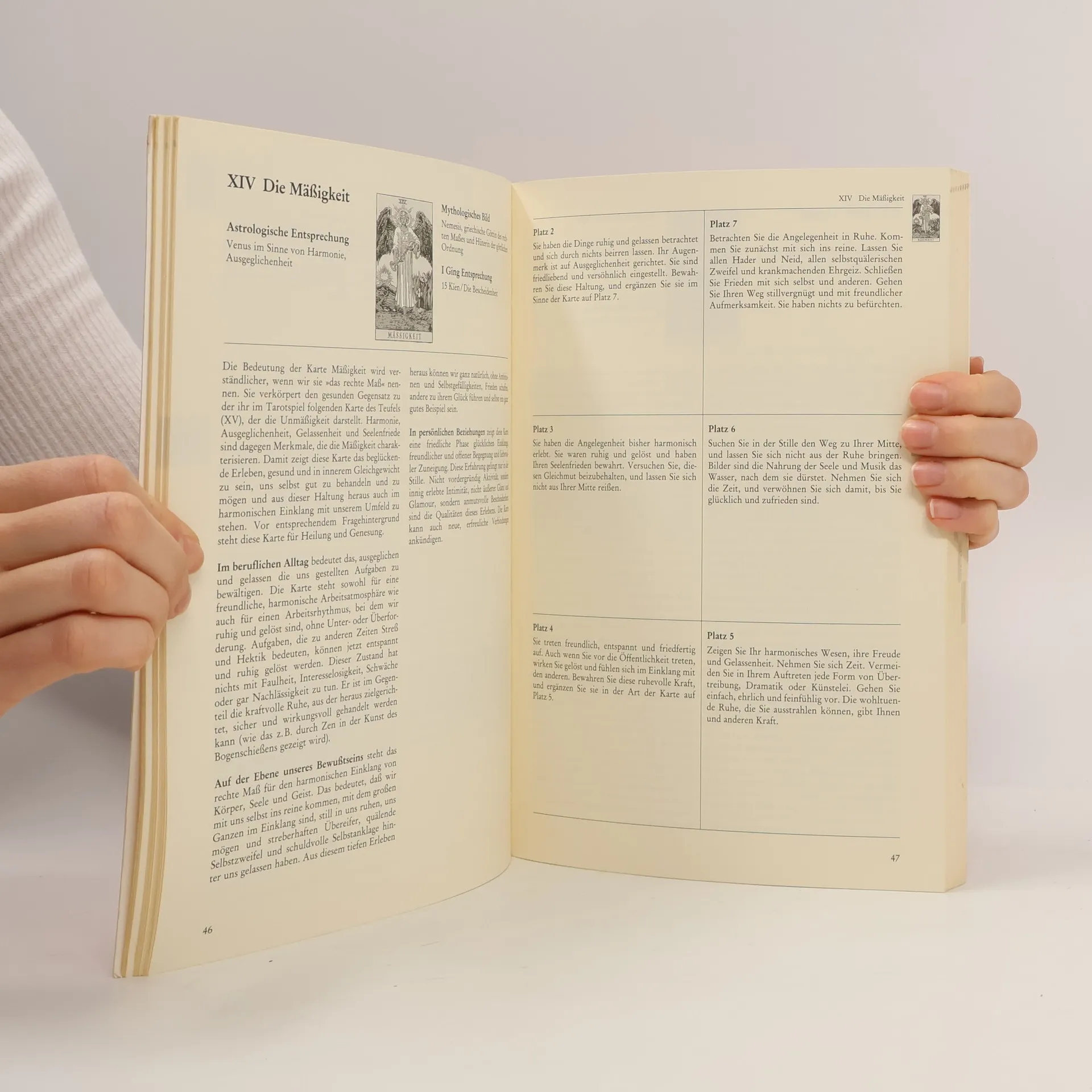 Das Arbeitsbuch zum Tarot läßt sich auf vielerlei Weise gebrauchen: • als Lehrbuch zum Tarot, das den praktischen Einstieg ohne theoretische Vorkenntnisse weist • als Orakelbuch, das bildverschlüsselte Antworten auf persönliche Fragen gibt • als Praxisbuch, das für alle 78 Tarotkarten die allgemeine Alltagsbedeutung und die speziellen Aussagen für die Bereiche Beruf, Beziehung und Bewußtsein erläutert • als Nachschlagebuch, das die unterschiedliche Bedeutung der 78 Karten für alle 7 Plätze des Spiels "Der Weg" erläutert • als Arbeitsbuch, das dem Leser genügend Raum für seine eigenen Erfahrungen läßt. Der Fragende wird nicht mit einer mehr oder minder zwangsläufigen Entwicklung konfrontiert. Ihm werden gangbare Wege aufgezeigt, ihm wird - anhand acht verschiedener Legesysteme - deutlich gemacht, wie er sich im Hinblick auf das Fragethema bislang verhalten hat, was er statt dessen tun soll und womit er dabei rechnen darf und muß. Für den Fortgeschrittenen sind vor allem die Alltagsbetrachtungen bereichernd, mit denen die 78 Karten in den verschiedenen Erfahrungsbereichen beschrieben werden. Darüber hinaus schaffen die jeweiligen mythologischen Bilder, die astrologischen Zuordnungen und I Ging-Entsprechungen einen größeren Gesichtskreis.