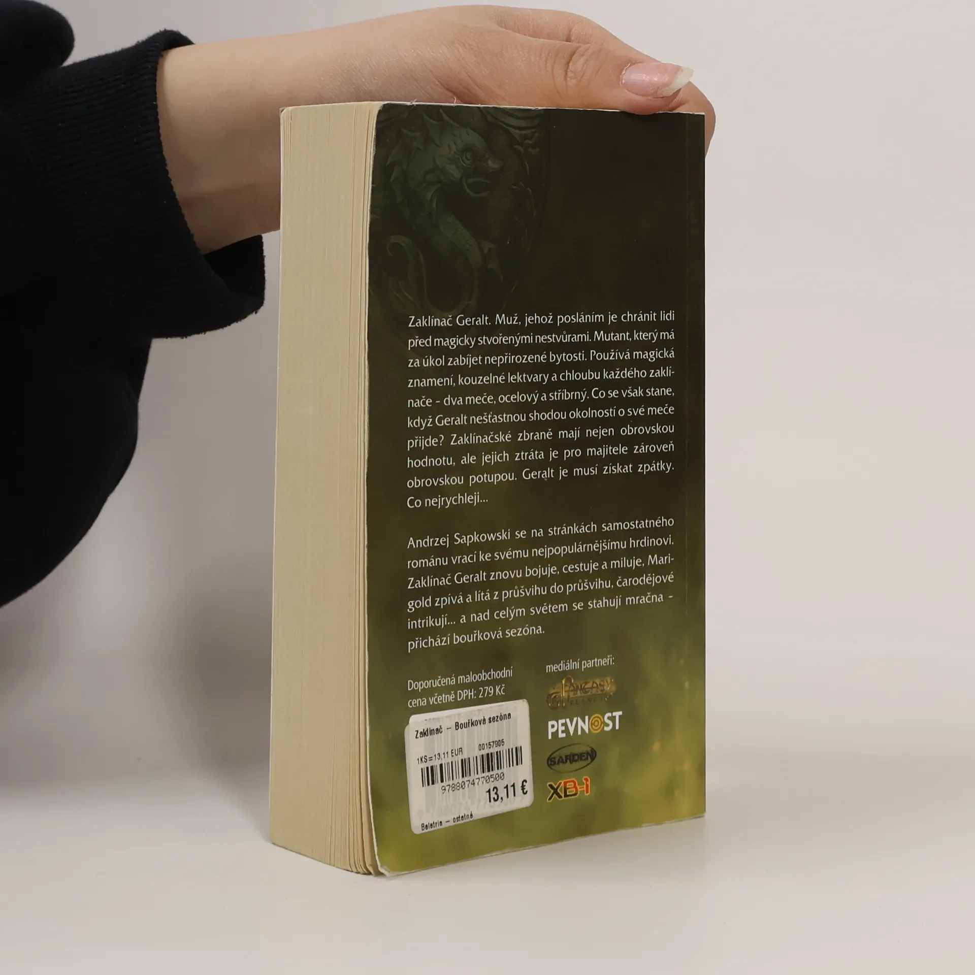 Zaklínač Geralt. Muž, jehož posláním je chránit obyčejné lidi před magicky stvořenými nestvůrami. Mutant, který má za úkol zabíjet nepřirozené bytosti. Používá magická znamení, kouzelné lektvary a chloubu každého zaklínače – dva meče, ocelový a stříbrný. Co se však stane, když Geralt nešťastnou shodou okolností o své meče přijde? Zaklínačské zbraně mají nejen obrovskou hodnotu, ale jejich ztráta je pro majitele zároveň obrovskou potupou. Geralt je musí získat zpátky. Co nejrychleji... Andrzej Sapkowski se na stránkách samostatného románu vrací ke svému nejpopulárnějšímu hrdinovi. Zaklínač Geralt znovu bojuje, cestuje a miluje, Marigold zpívá a lítá z průšvihu do průšvihu, čarodějové intrikují… a nad celým světem se stahují mračna – přichází bouřková sezóna.