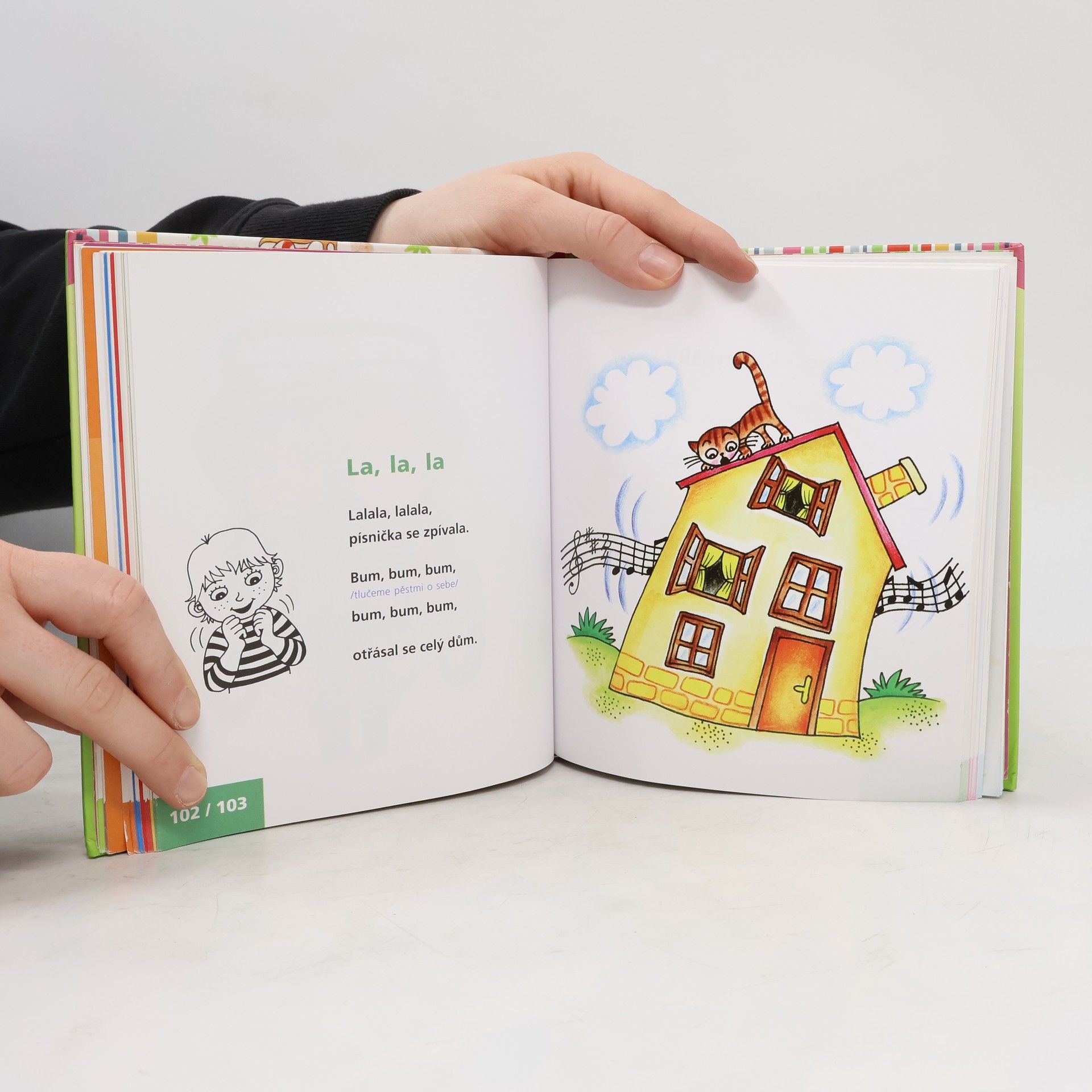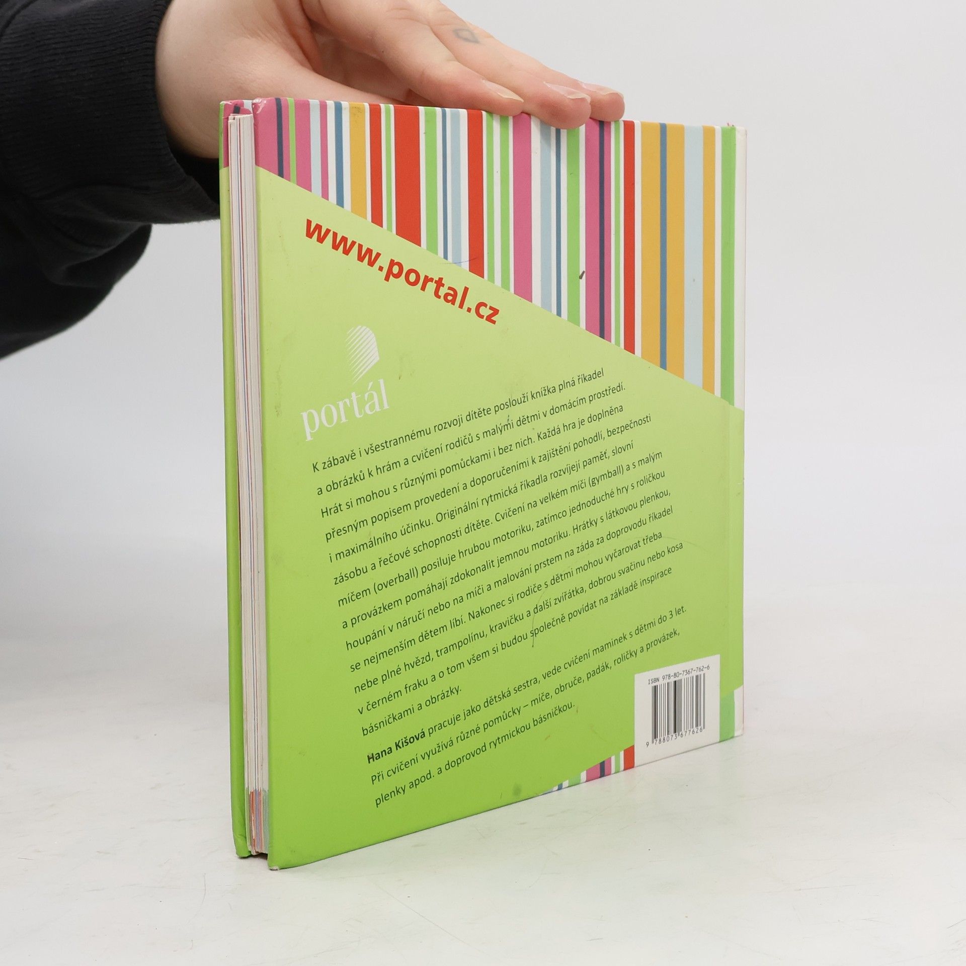 Podtitul: Povídáme si a cvičíme s dětmi do 4 let K zábavě i všestrannému rozvoji dítěte poslouží knížka plná říkadel a obrázků k hrám a cvičení rodičů s malými dětmi v domácím prostředí. Hrát si budou s různými pomůckami i bez nich. Každá hra je doplněna přesným popisem provedení a doporučeními k zajištění pohodlí, bezpečnosti i maximálního účinku. Originální rytmická říkadla rozvíjejí paměť, slovní zásobu a řečové schopnosti dítěte. Cvičení na velkém míči (gymball) a s malým míčem (overball) posiluje hrubou motoriku, zatímco jednoduché hry s roličkou a provázkem pomáhají zdokonalit jemnou motoriku. Hrátky s látkovou plenkou, houpání v náručí nebo na míči a malování prstem na záda za doprovodu říkadel se nejmenším dětem líbí. Nakonec si rodiče s dětmi mohou vyčarovat třeba nebe plné hvězd, trampolínu, kravičku a další zvířátka, dobrou svačinu nebo kosa v černém fraku a o tom všem si budou společně povídat na základě inspirace básničkami a obrázky. Hana Kišová pracuje jako dětská sestra, vede cvičení maminek s dětmi do 3 let. Při cvičení využívá různé pomůcky – míče, obruče, padák, roličky a provázek, plenky apod. a doprovod rytmickou básničkou.