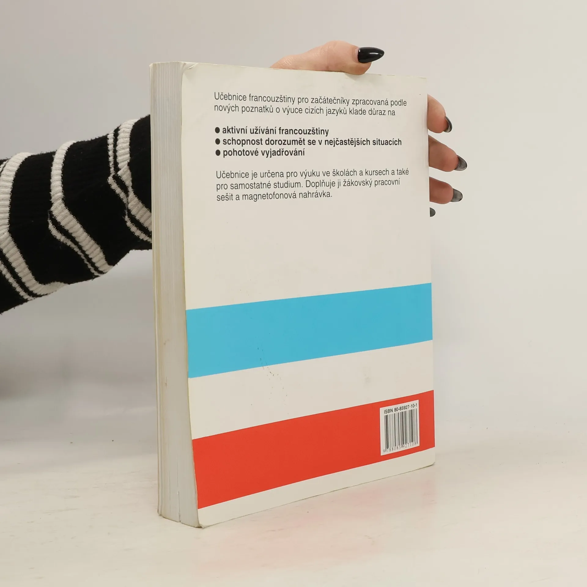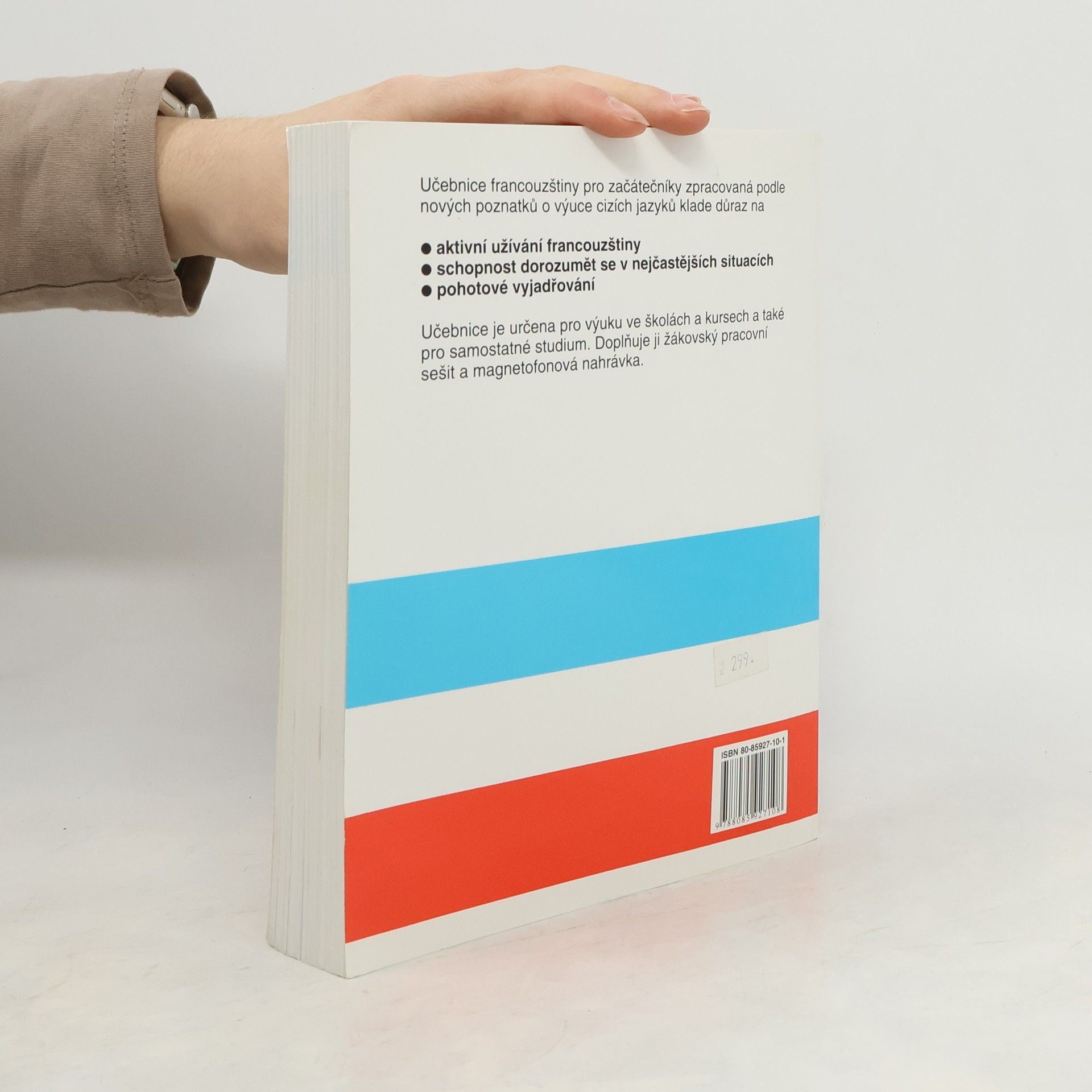 Učebnice francouzštiny pro začátečníky je zpracovaná podle nových poznatků o výuce cizích jazyků. Klade důraz na aktivní užívání francouzštiny, schopnost dorozumět se v nejčastějších situacích a pohotové vyjadřování. Obsahuje základní gramatiku a slovní zásobu potřebnou pro komunikaci v nejběžnějších situacích, a to s důrazem na potřeby českého turisty ve Francii. Je určena pro výuku ve školách, v kursech, a také pro samostatné studium. Učebnici doplňuje žákovský sešit a sada tří audiokazet. Předpokládá se samostatná práce doma se žákovským sešitem a nahrávkou, proto je do sešitu pro žáky zařazen i klíč téměř ke všem cvičením.