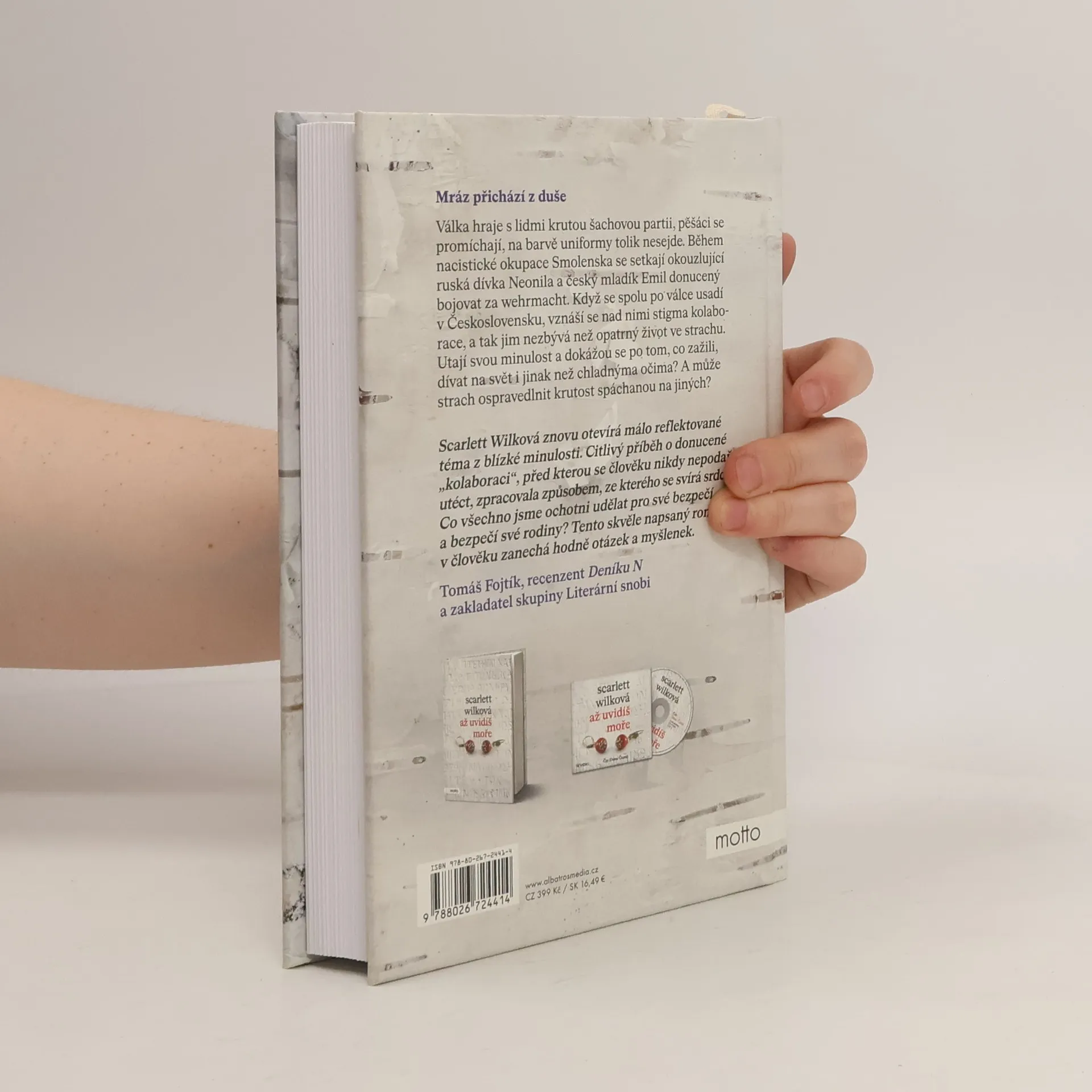 Mráz přichází z duše. Historický román od autorky bestselleru Až uvidíš moře.Válka hraje s lidmi krutou šachovou partii, pěšáci se promíchají, na barvě uniformy tolik nesejde. Během nacistické okupace Smolenska se setkají okouzlující ruská dívka Neonila a český mladík Emil donucený bojovat za wehrmacht. Když se spolu po válce usadí v Československu, vznáší se nad nimi stigma kolaborace, a tak jim nezbývá než opatrný život ve strachu. Utají svou minulost a dokážou se po tom, co zažili, dívat na svět i jinak než chladnýma očima? A může strach ospravedlnit krutost spáchanou na jiných? Scarlett Wilková přichází s druhým románem, v němž opět otevírá citlivé a málo reflektované téma novodobých dějin.