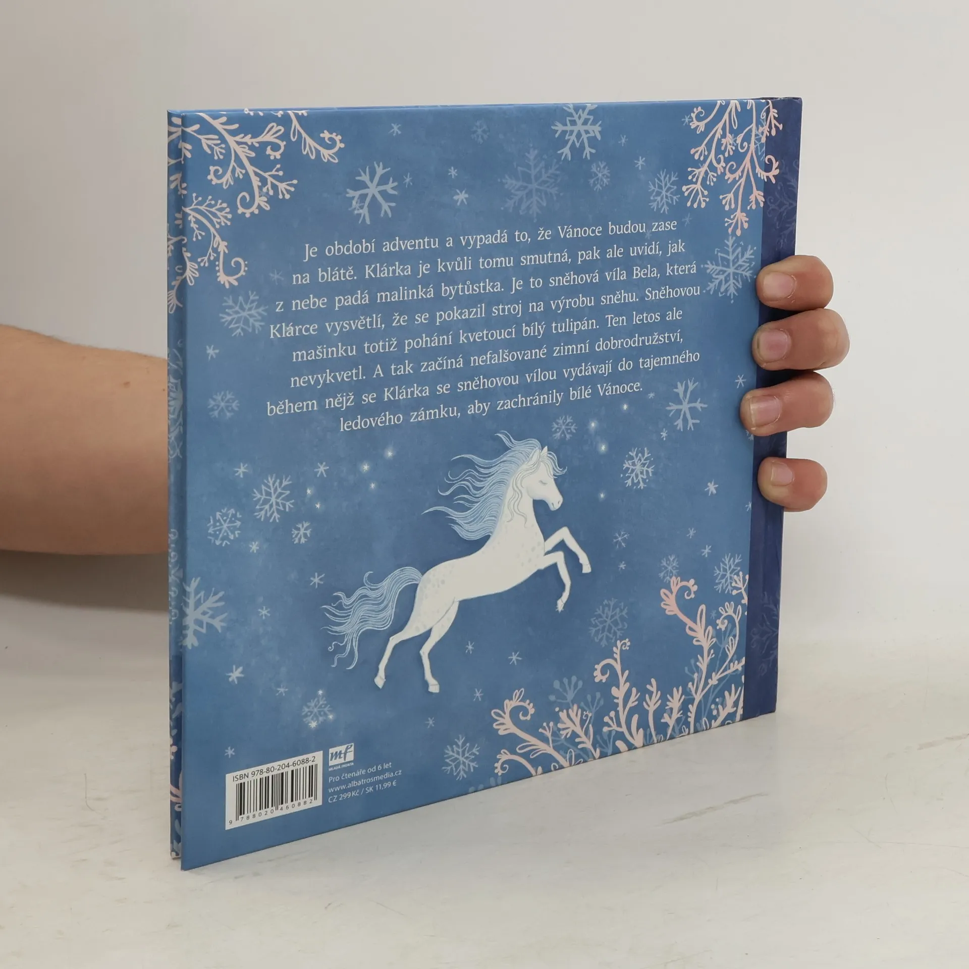 Je období adventu a vypadá to, že Vánoce budou zase na blátě. Klárka je kvůli tomu smutná, pak ale uvidí, jak z nebe padá malinká bytůstka. Je to sněhová víla Bela, která Klárce vysvětlí, že se pokazil stroj na výrobu sněhu. Sněhovou mašinku totiž pohání kvetoucí bílý tulipán. Ten letos ale nevykvetl. A tak začíná nefalšované zimní dobrodružství, během nějž se Klárka se sněhovou vílou vydávají do tajemného ledového zámku, aby zachránily bílé Vánoce.