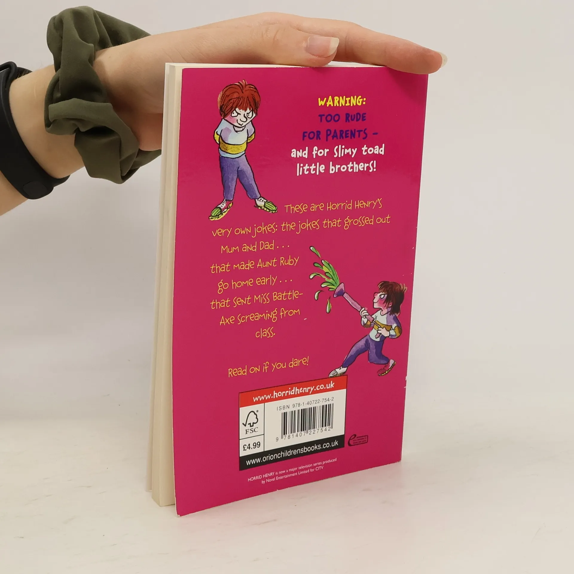 Warning: Too rude for parents and for slimy toad little brothers These are Horrid Henry's very own jokes: the jokes that grossed out Mom and Dad... that made Aunt Ruby run home... that sent Miss Battle-Axe screaming from class. Be horrid Read Henry's jokes. Then tell them to the world