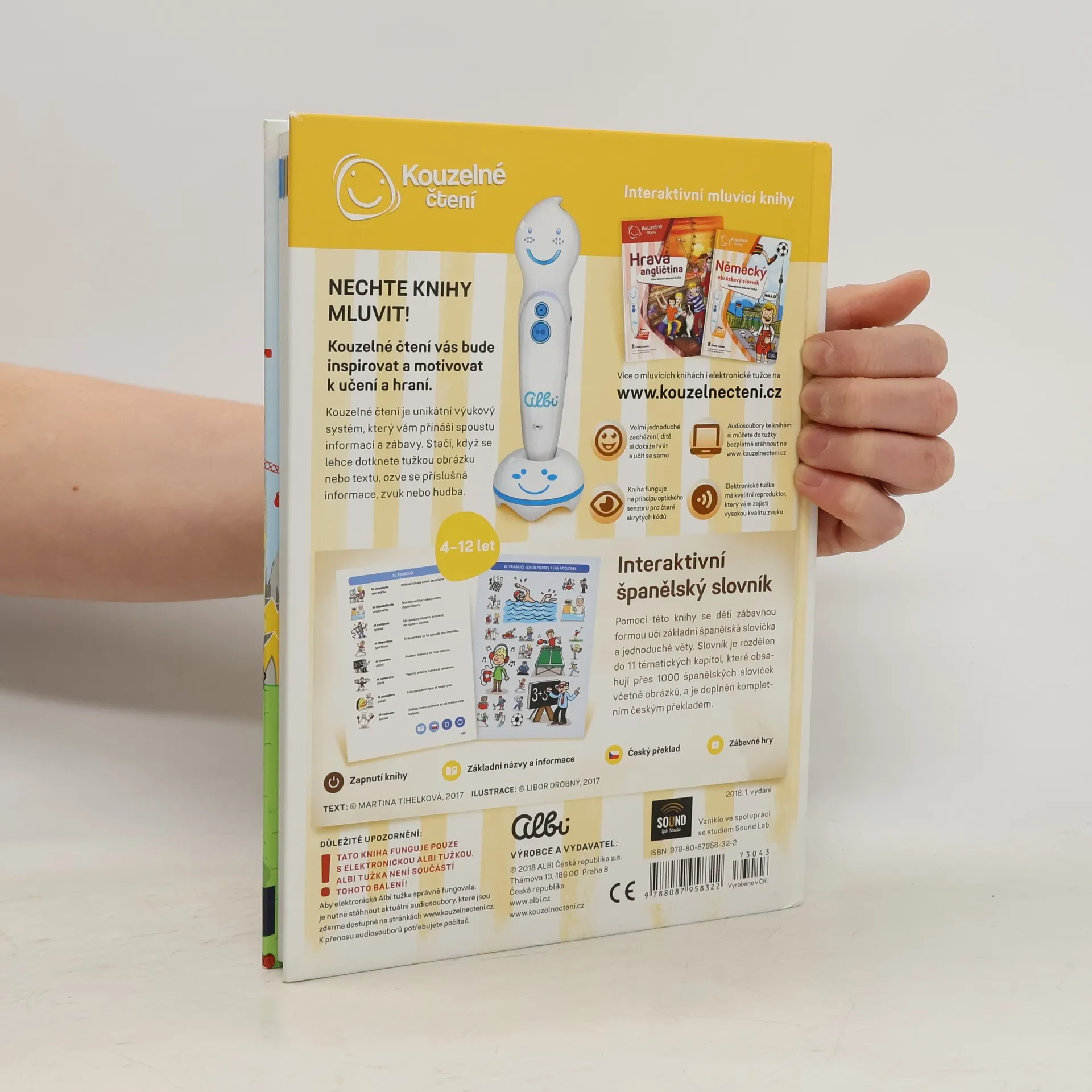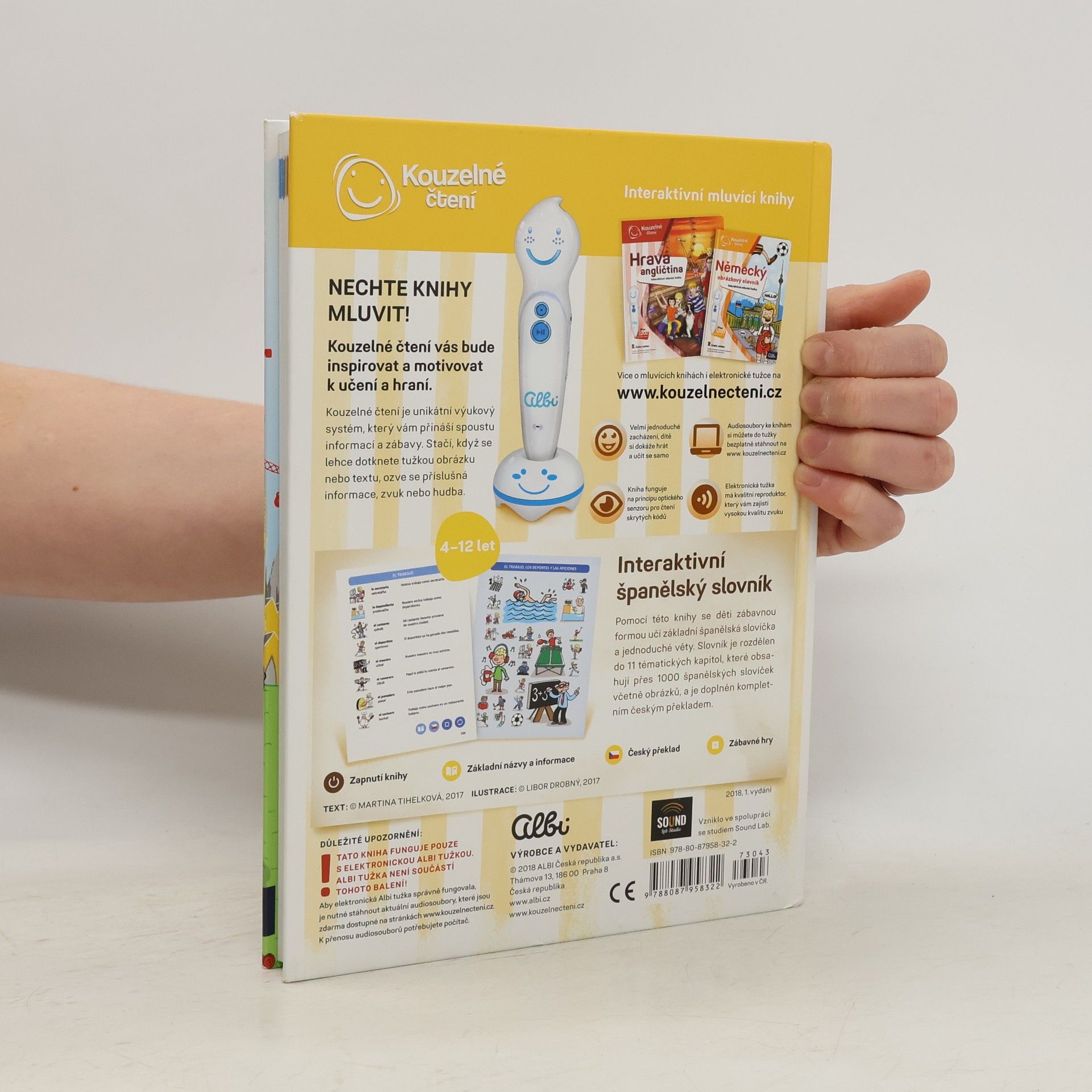 Interaktivní mluvící učebnice španělštiny pro začátečníky i mírně pokročilé. Plně funguje pouze s elektronickou Albi tužkou, která není součástí této knihy.Pomocí této knihy se děti zábavnou formou učí základní španělská slovíčka a jednoduché věty. Slovník je rozdělen do 11 tematických kapitol, které obsahují přes 1000 španělských slovíček včetně obrázků, a je doplněn kompletním českým překladem.