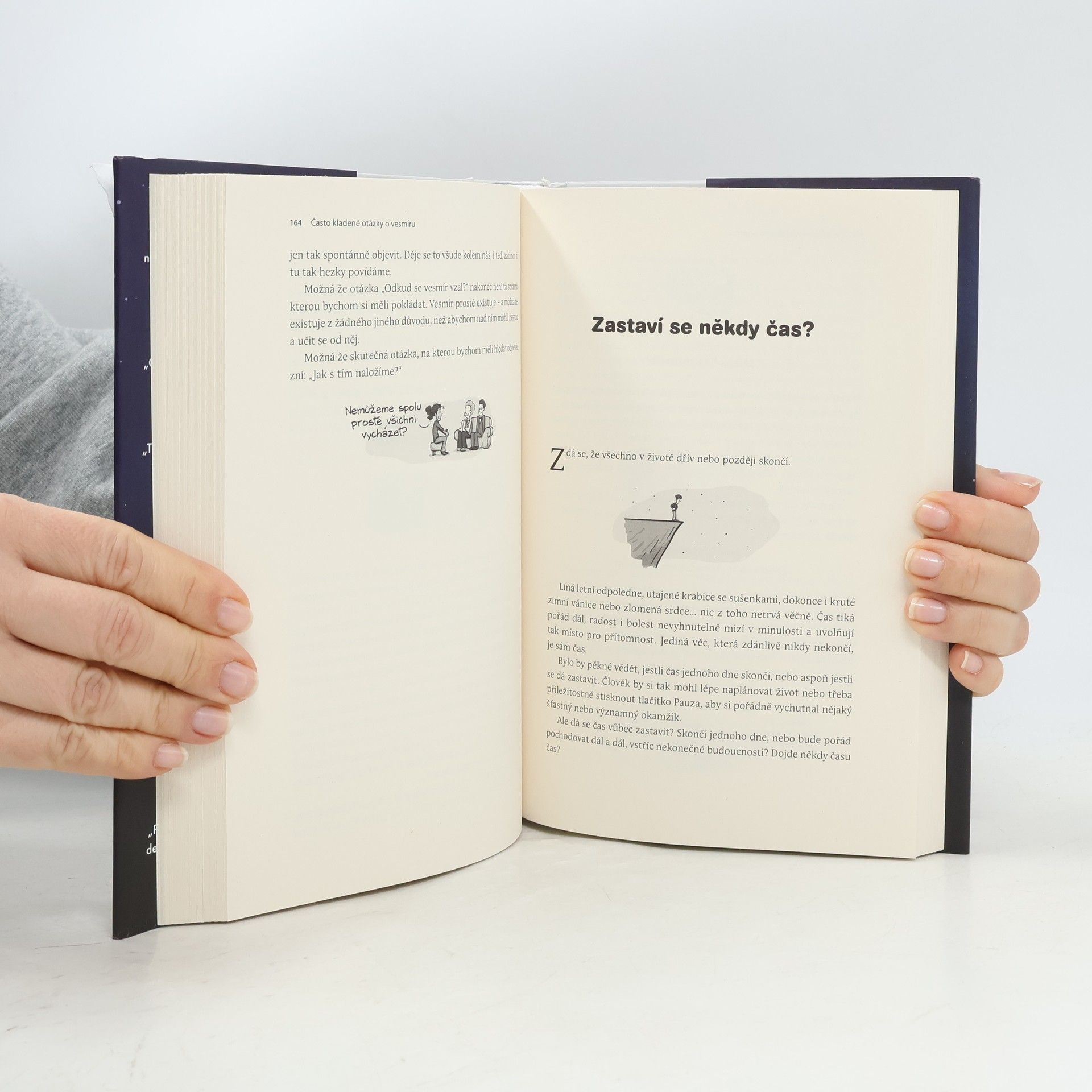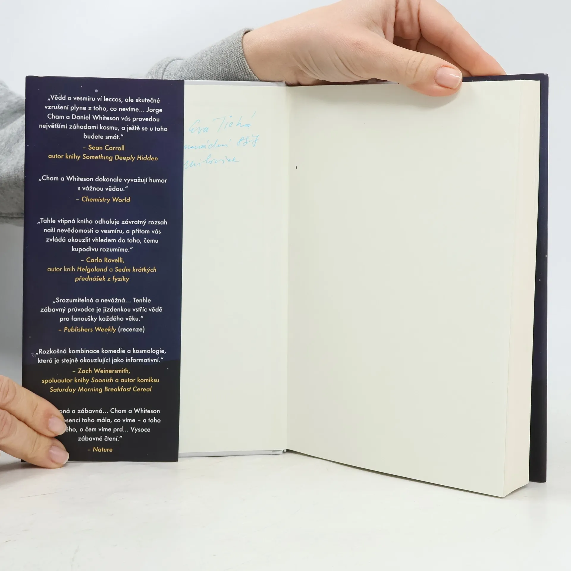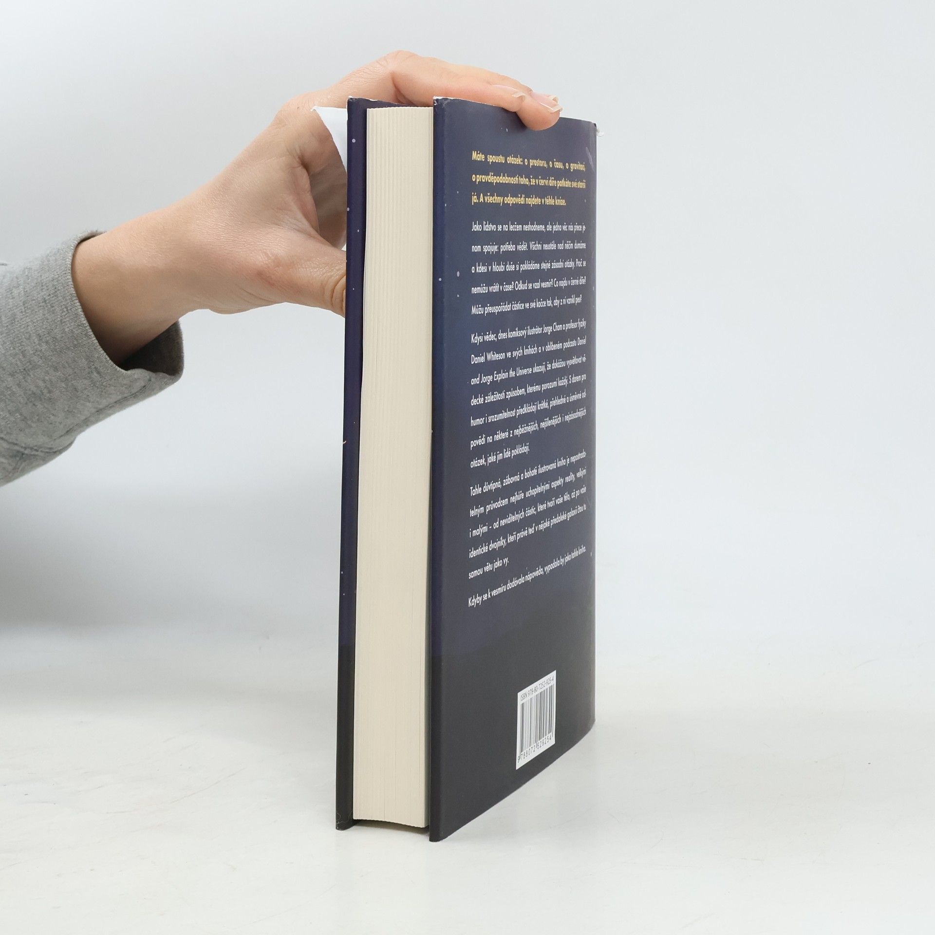 Máte spoustu otázek: o prostoru, o času, o gravitaci, o pravděpodobnosti toho, že v červí dítě potkáte své starší já. A všechny odpovědi najdete v téhle knize.Jako lidstvo se na lecčem neshodneme, ale jedna věc nás přece jenom spojuje: potřeba vědět. Všichni neustále nad něčím dumáme a kdesi v hloubi duše si pokládáme stejné zásadní otázky. Proč se nemůžu vrátit v čase? Odkud se vzal vesmír? Co najdu v černé díře? Můžu přeuspořádat částice ve své kočce tak, aby z ní vznikl pes?Kdysi vědec, dnes komiksový ilustrátor Jorge Cham a profesor fyziky Daniel Whiteson ve svých knihách a v oblíbeném podcastu Daniel and Jorge Explain the Universe ukazují, že dokážou vysvětlovat vědecké záležitosti způsobem, jakému porozumí každý. S darem pro humor i srozumitelnost předkládají krátké, přehledné a úsměvné odpovědi na některé z nejběžnějších, nejšílenějších i nejzásadnějších otázek, jaké jim lidé pokládají.Tahle důvtipná, zábavná a bohatě ilustrovaná kniha je nepostradatelným průvodcem nejhůře uchopitelnými aspekty reality, velkými i malými – od neviditelných částic, které tvoří vaše tělo, až po vaše identické dvojníky, kteří právě teď v nějaké předaleké galaxii čtou tu samou větu jako vy.