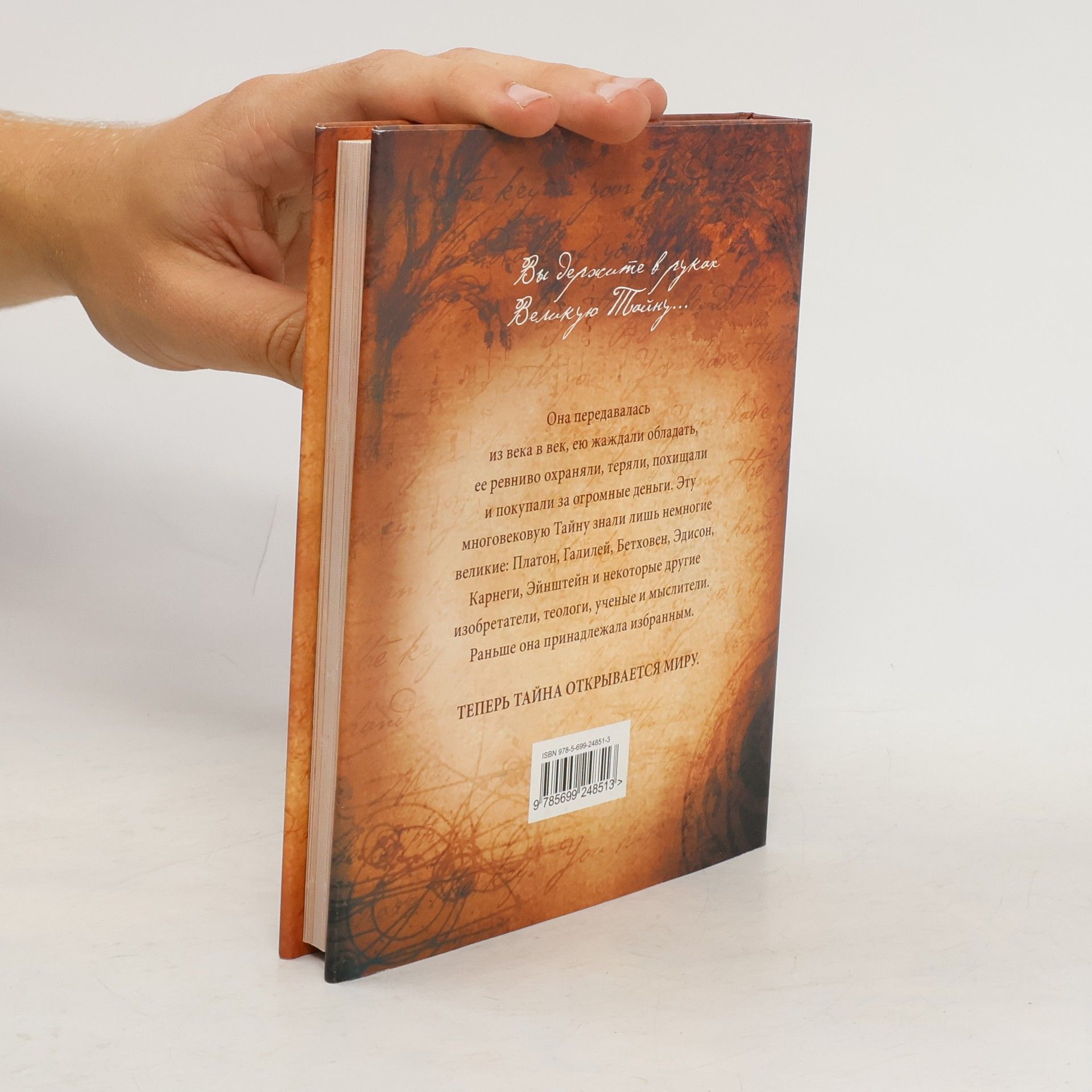 Фрагменты великой тайны можно найти в устном народном творчестве, в литературе, религиозных и философских течениях всего мира на много столетий вглубь веков. Впервые все части Тайны сведены вместе в потрясающем откровении, которое изменит жизнь каждого прочитавшего книгу. Из этой книги Вы узнаете, как использовать Тайну во всех аспектах своей жизни – деньги, здоровье, отношения и, вообще, для любого взаимодействия с внешним миром. Вы начнете понимать скрытую и нетронутую силу внутри вас, и это открытие сможет принести Вам радость, счастье и благополучие во всем. Со времен «Кода да Винчи» и «Алхимика» читающий мир не знал такой сенсации. «Тайна» прочно обосновалась на верхних строчках книжных рейтингов по обе стороны океана. На данный момент продано уже более трех миллионов экземпляров, и это только начало. Книга Ронды Берн — ваш шанс изменить судьбу. Не упустите же его.