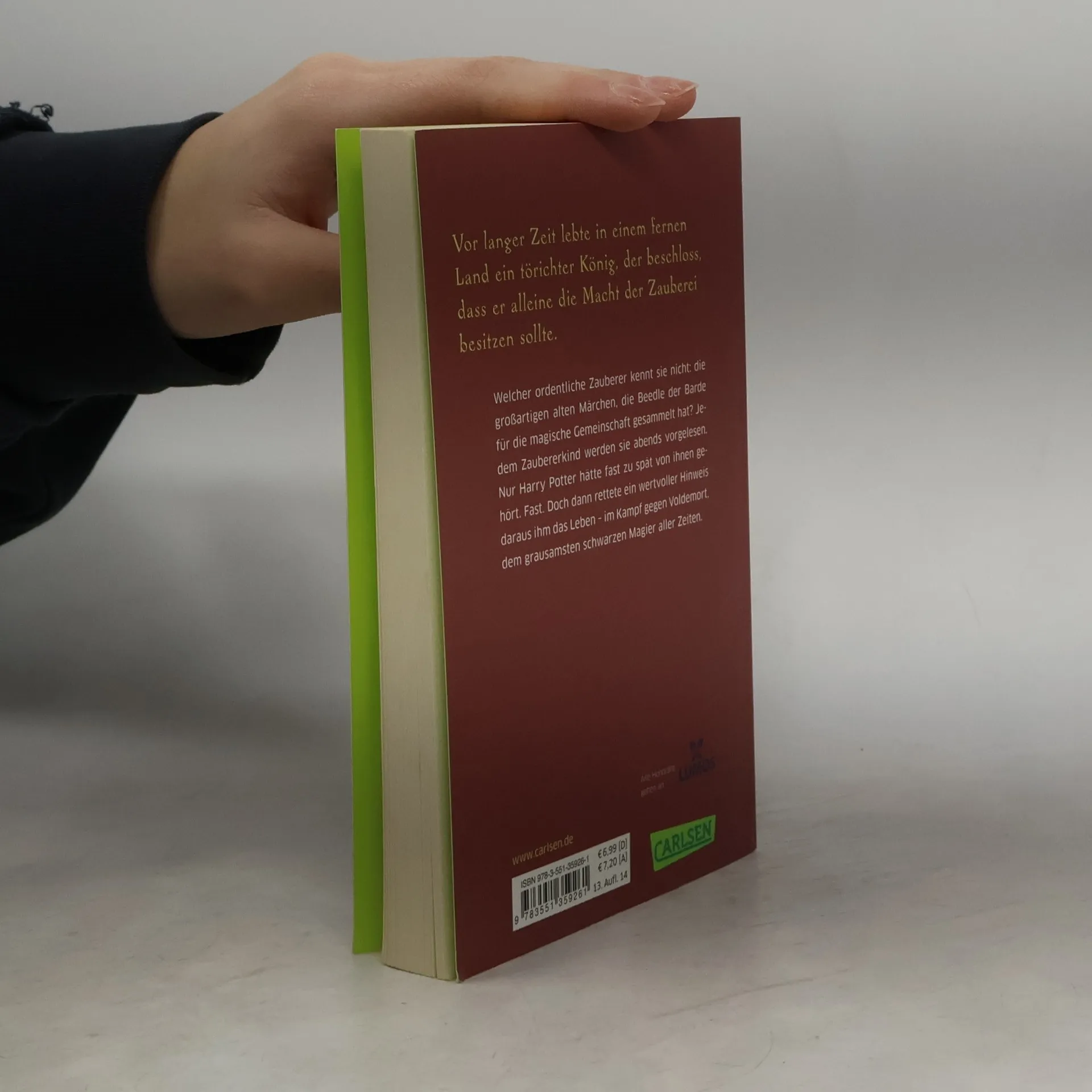 Welcher ordentliche Zauberer kennt sie nicht: die großartigen alten Märchen, die Beedle der Barde für die magische Gemeinschaft gesammelt hat? Jedem Zaubererkind werden sie abends vorgelesen. Nur Harry Potter hätte fast zu spät von ihnen gehört. Fast. Doch dann rettete ein wertvoller Hinweis daraus ihm das Leben - im Kampf gegen Voldemort, dem grausamsten schwarzen Magier aller Zeiten. Nun endlich haben auch Muggels die Gelegenheit, fünf der Märchen kennenzulernen. Eine Sternstunde für Potter-Fans. Und für alle, die zauberhafte Geschichten lieben. Mit einem Cover der Harry-Potter-Illustratorin Sabine Wilharm.