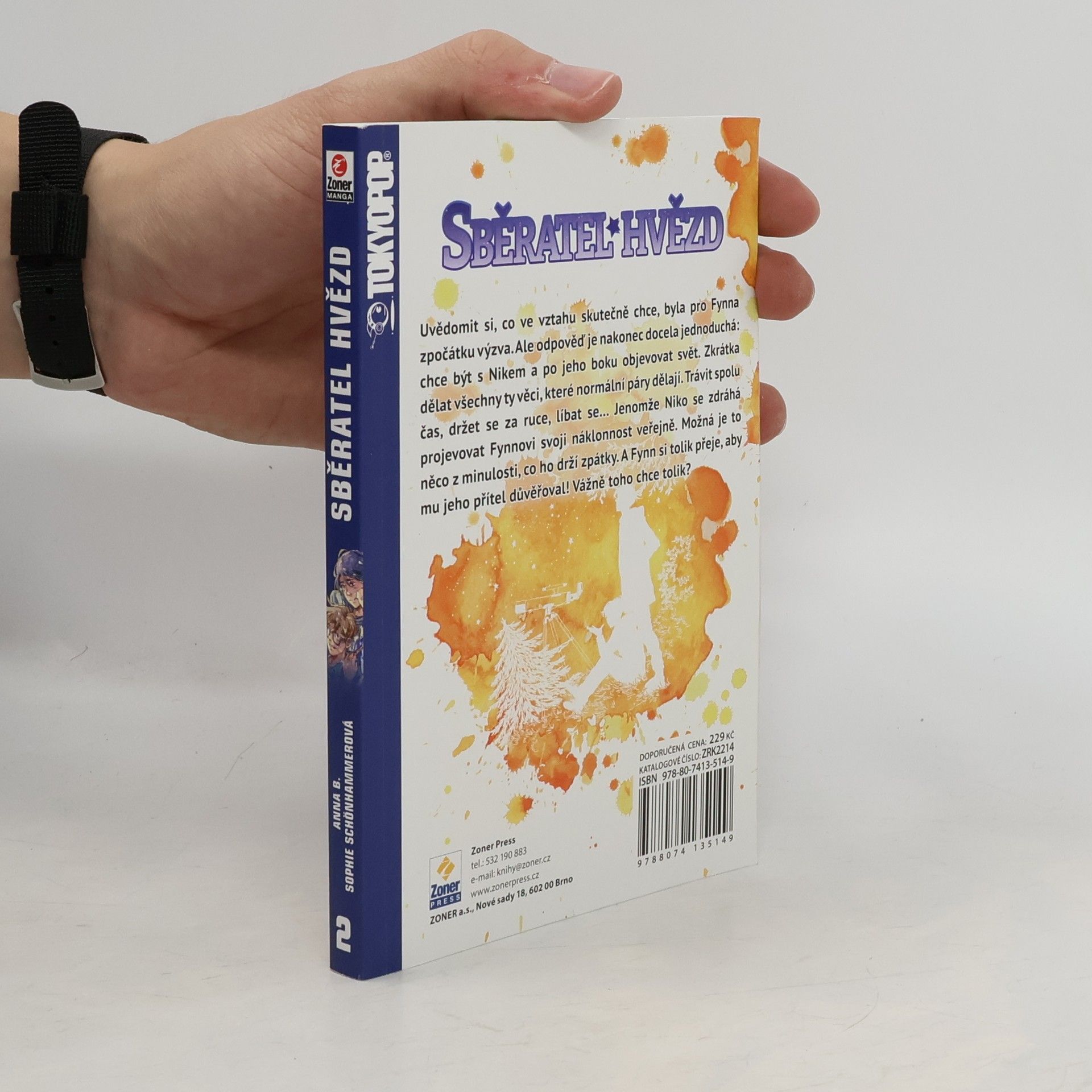 Sběratel hvězd (Star Collector) je japonská manga o lásce mezi dvěma chlapci, kteří si tu lásku musí obhájit nejenom před svým okolím, ale také sami před sebou. Něžný příběh o dospívání, poznávání sebe sama, objevování sexuality a hledání svého místave světě, který nám nemusí vždy dávat smysl, ale hlavně když v něm nejsme sami.Uvědomit si, co ve vztahu skutečně chce, byla pro Fynna zpočátku výzva. Obzvlášť po tom, co se sám tak dlouho ploužil od ničehok ničemu a mezi jeho hlavní záliby patřilo chození za školu, kouření a poflakování se po okolí.Teď už to ale ví jistě. Chce být s Nikem, s tím roztomilým nerdem, který tak rád pozoruje hvězdy. Fynn si nepřeje nic jiného než po jeho boku objevovat svět a dělat všechny ty věci, které normální páry dělají. Jako třeba trávit spolu čas, držet se za ruce, líbat se…Jenomže Niko je najednou odtažitý a zdráhá se projevovat Fynnovi svoji náklonnost veřejně. Možná má strach. Možná je to něco z jeho minulosti, co ho drží zpátky. A Fynn přitom nechce nic víc, než aby mu jeho přítel důvěřoval. Vážně toho chce tolik?
