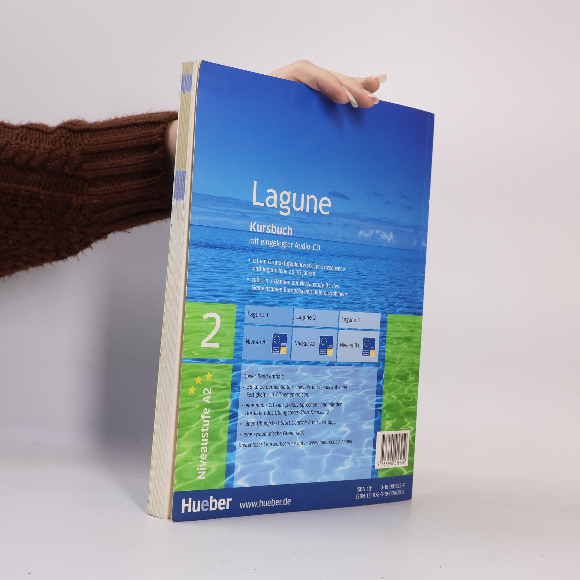 Zielniveau A2: Lagune ist ein Grundstufenlehrwerk mit einer durchdachten Wortschatz- und Grammatikprogression sowie einem umfangreichen Übungsangebot. Das Autorenteam setzt die Tradition erfolgreicher Hueber-DaF-Lehrwerke fort und erfüllt alle modernen Standards eines kommunikativen Lehrwerks. Es richtet sich an Erwachsene und Jugendliche ab 16 Jahren in Grundstufenkursen (A1–B1) weltweit und führt zu den sprachlichen Zielen des Gemeinsamen Europäischen Referenzrahmens. Jede Einheit umfasst vier Seiten, die sich auf die Fertigkeiten Lesen, Hören, Sprechen und Schreiben konzentrieren, ergänzt durch eine Einheit „Fokus Strukturen“. Fünf Kurzmodule bilden einen Themenkreis, der durch eine Einstiegsseite und eine Doppelseite mit landeskundlichen Fotos eingeleitet wird. Jeder Themenkreis enthält verschiedene „Fokus“-Seiten sowie Abschlussseiten zu Landeskunde und eine humorvolle Zusammenfassung. Band 1 hat sechs, die Bände 2 und 3 je sieben Themenkreise. Am Ende des Kursbuchs gibt es Übungstests zur Prüfungsvorbereitung, eine Übersicht über den Grammatikstoff und eine Wortschatzliste. Lagune bietet zudem einen umfangreichen Internetservice zur Unterstützung der Kursleiter und zusätzliche Übungsmöglichkeiten für die Lernenden, um sich im deutschsprachigen Alltag zurechtzufinden. Die