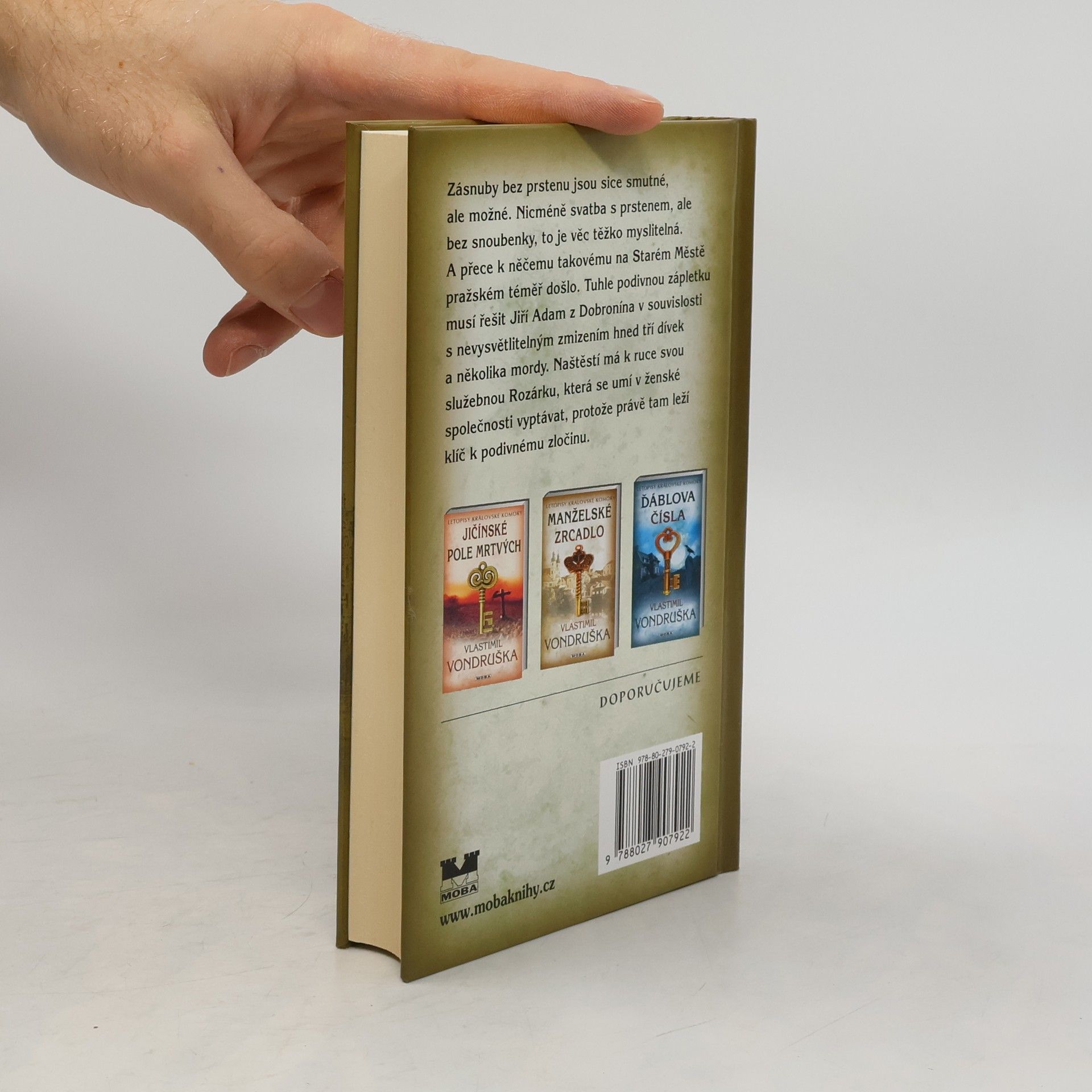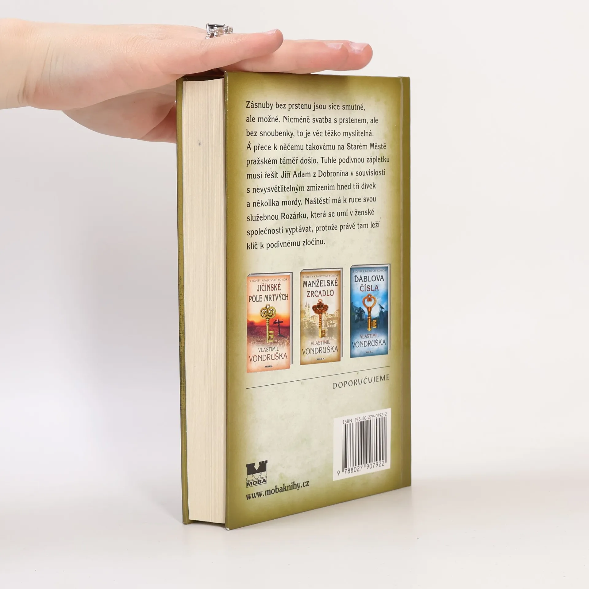 Zásnuby bez prstenu jsou sice smutné, ale možné. Nicméně zásnuby s prstenem, ale bez snoubenky, to je věc těžko myslitelná. A přece k ní na Starém Městě pražském došlo. Tuhle podivnou zápletku musí řešit Jiří Adam z Dobronína v souvislosti s nevysvětlitelným mordem. Naštěstí má k ruce svou služebnou Rozárku, která se umí v ženské společnosti vyptávat, protože právě tam leží klíč k podivnému zločinu…