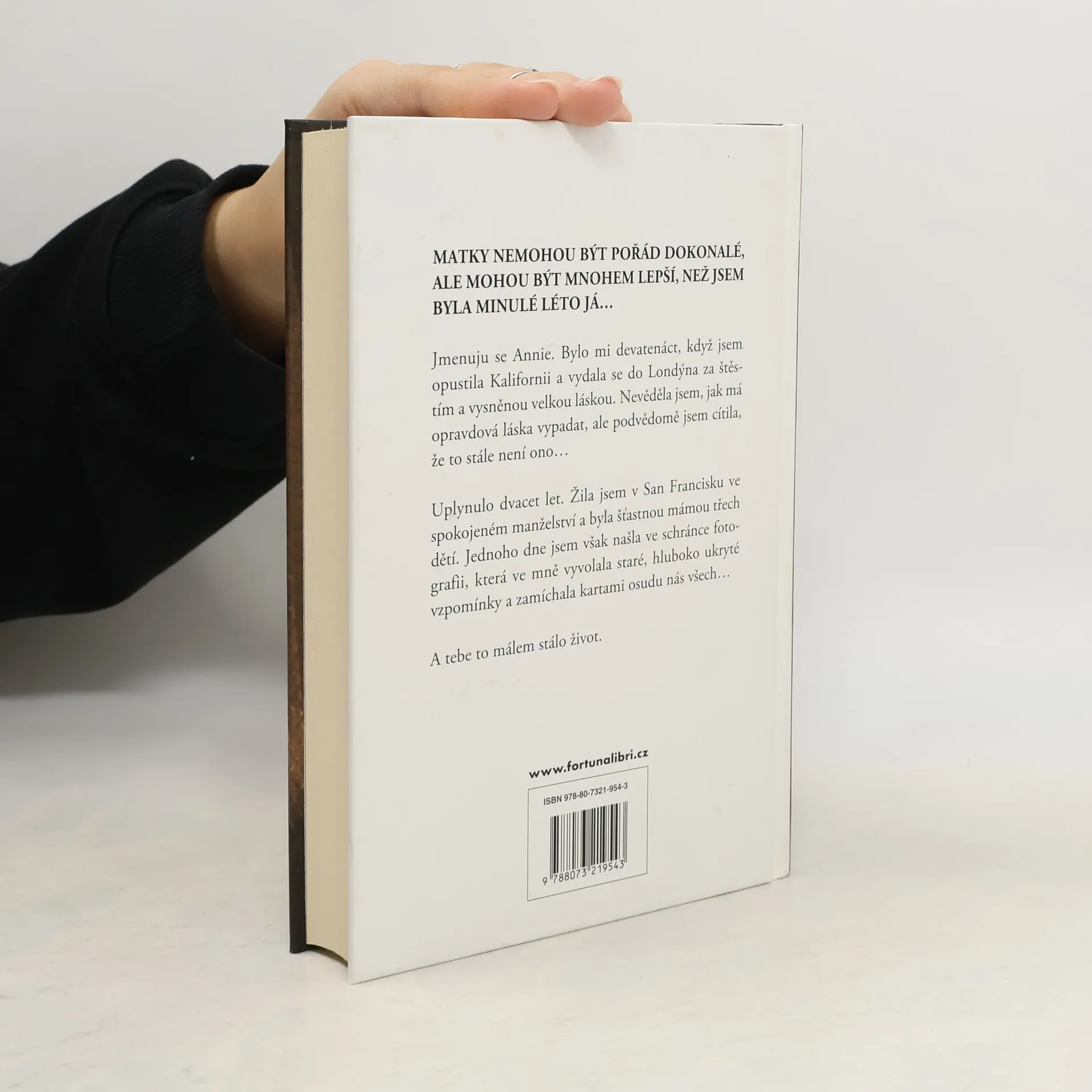 MATKY NEMOHOU BÝT POŘÁD DOKONALÉ, ALE MOHOU BÝT MNOHEM LEPŠÍ, NEŽ JSEM BYLA MINULÉ LÉTO JÁ… Jmenuju se Annie. Bylo mi devatenáct, když jsem opustila Kalifornii a vydala se do Londýna za štěstím a vysněnou velkou láskou. Nevěděla jsem, jak má opravdová láska vypadat, ale podvědomě jsem cítila, že to stále není ono… Uplynulo dvacet let. Žila jsem v San Francisku ve spokojeném manželství a byla šťastnou mámou třech dětí. Jednoho dne jsem však našla ve schránce fotografii, která ve mně vyvolala staré, hluboko ukryté vzpomínky a zamíchala kartami osudu nás všech… A tebe to málem stálo život.