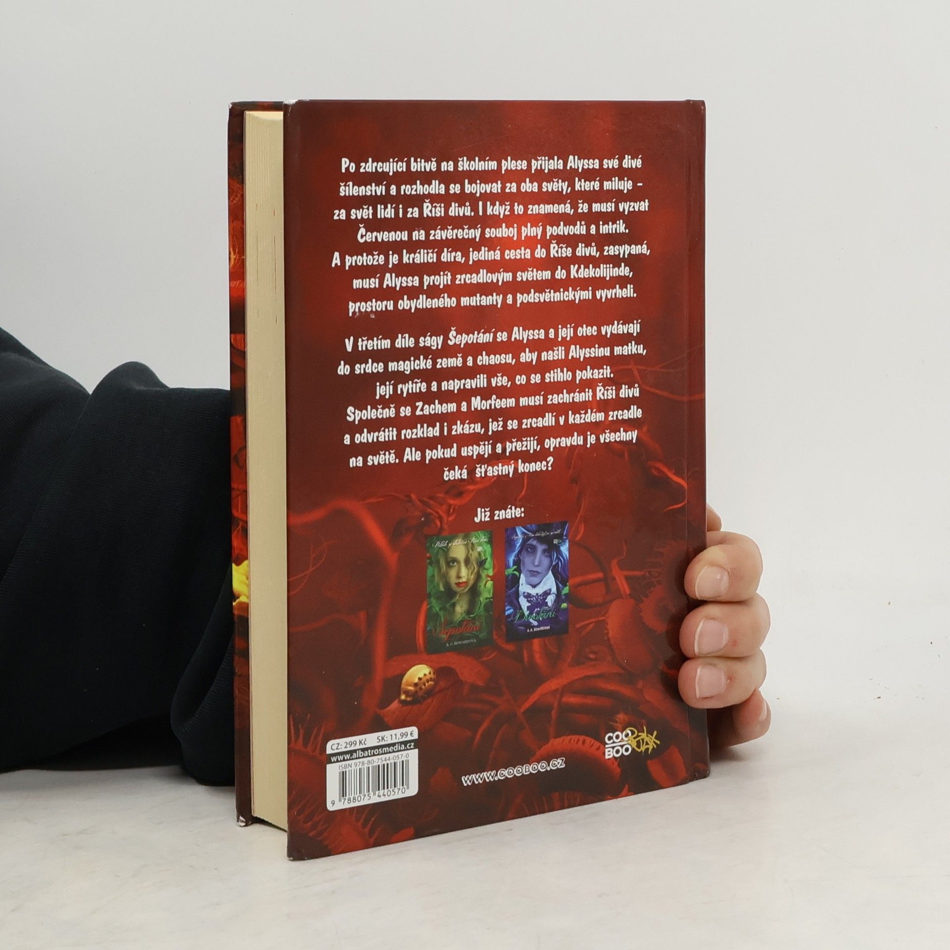 Alyssa přežila maturitní ples i bitvu, která se kolem něj rozpoutala, akceptovala své šílenství a získala nadhled. Je teď rozhodnutá bojovat za oba dva své světy i lidi v nich. Za svět lidí i za Říši divů. Chce zachránit všechny, které miluje. I když to znamená, že musí vyzvat Červenou královnu na závěrečný souboj vůle a intrik… a i když jediná cesta do Říše divů vede skrz zrcadlo – přes paralelní dimenzi plnou zmutovaných a nebezpečných podsvětníků. V třetím díle ságy Šepotání se Alyssa a její otec vydávají do srdce magické země a chaosu, aby hledali Alyssinu matku a napravili vše, co se stihlo pokazit. Společně se Zachem a Morfeem musí zachránit Říši divů a odvrátit rozklad i zkázu, jež se zrcadlí v každém zrcadle na světě. Ale pokud uspějí a přežijí, opravdu je čeká šťastný konec?