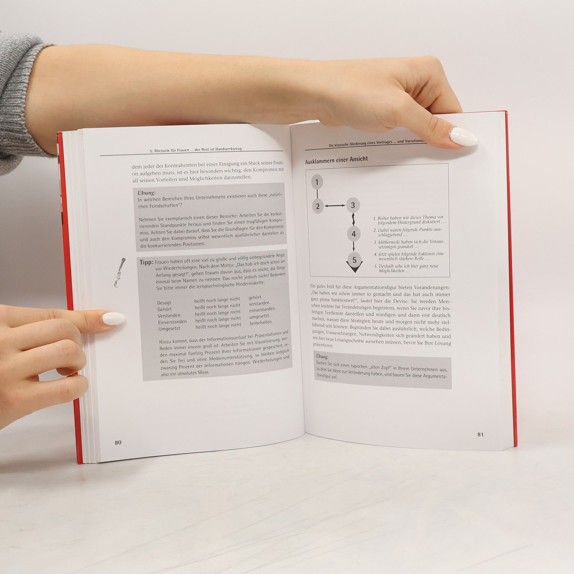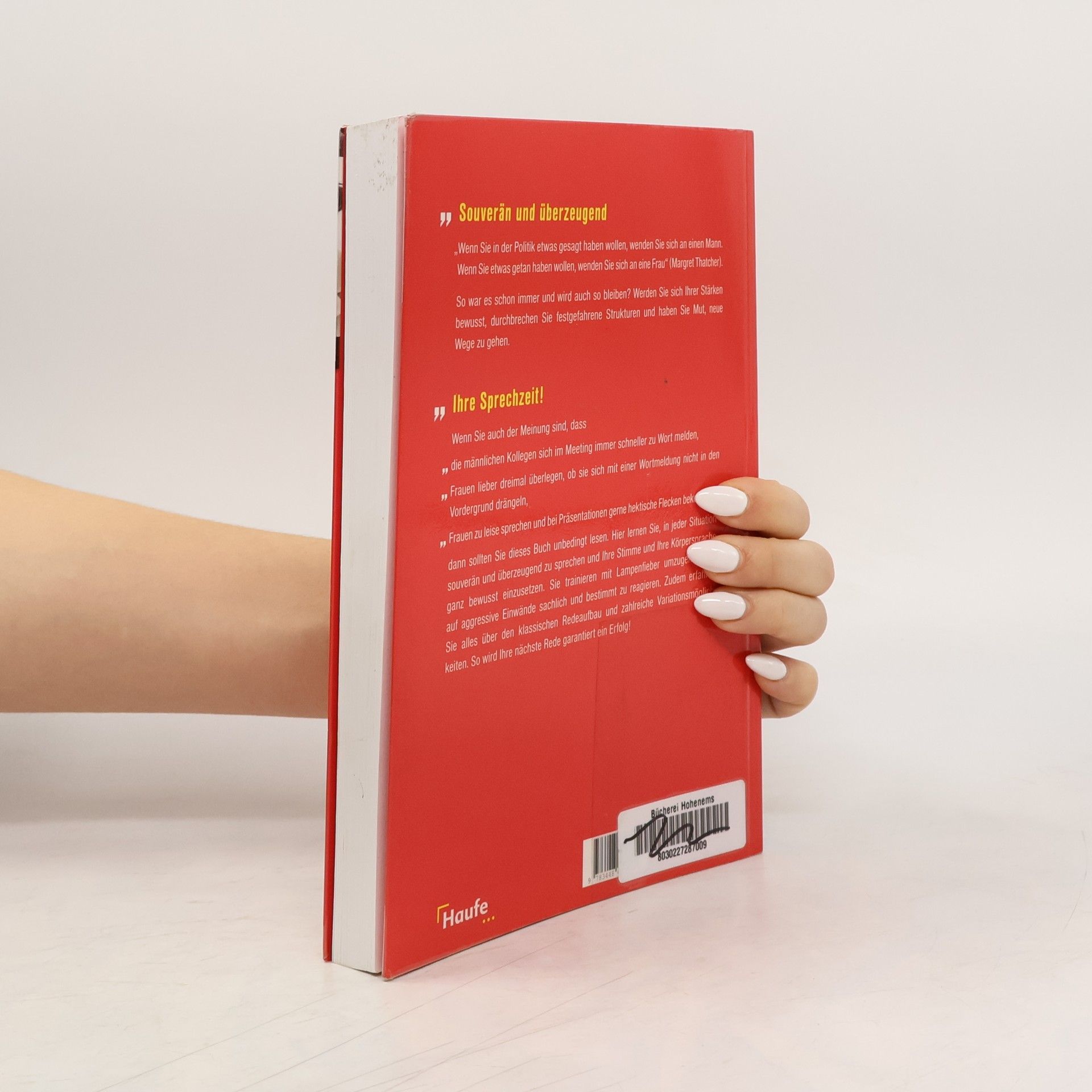 Hier ist das Rhetoriktraining speziell für Frauen. Das Buch geht auf typische Fragen und Probleme aus der Sicht von Frauen ein, z.B. Einsatz von Stimme, selbstbewusste Reaktion auf männliches Dominanzverhalten, Einwände und Lampenfieber. Das Buch bietet trainingserprobte Übungen für Frauen, die souverän auftreten und überzeugen wollen. Sie lernen eine Rede aufzubauen, das Manuskript zu gestalten und die Medien professionell einzusetzen. Zwischenrufe und Kritik - wie Sie als Frau gelassen damit umgehen bzw. kontern