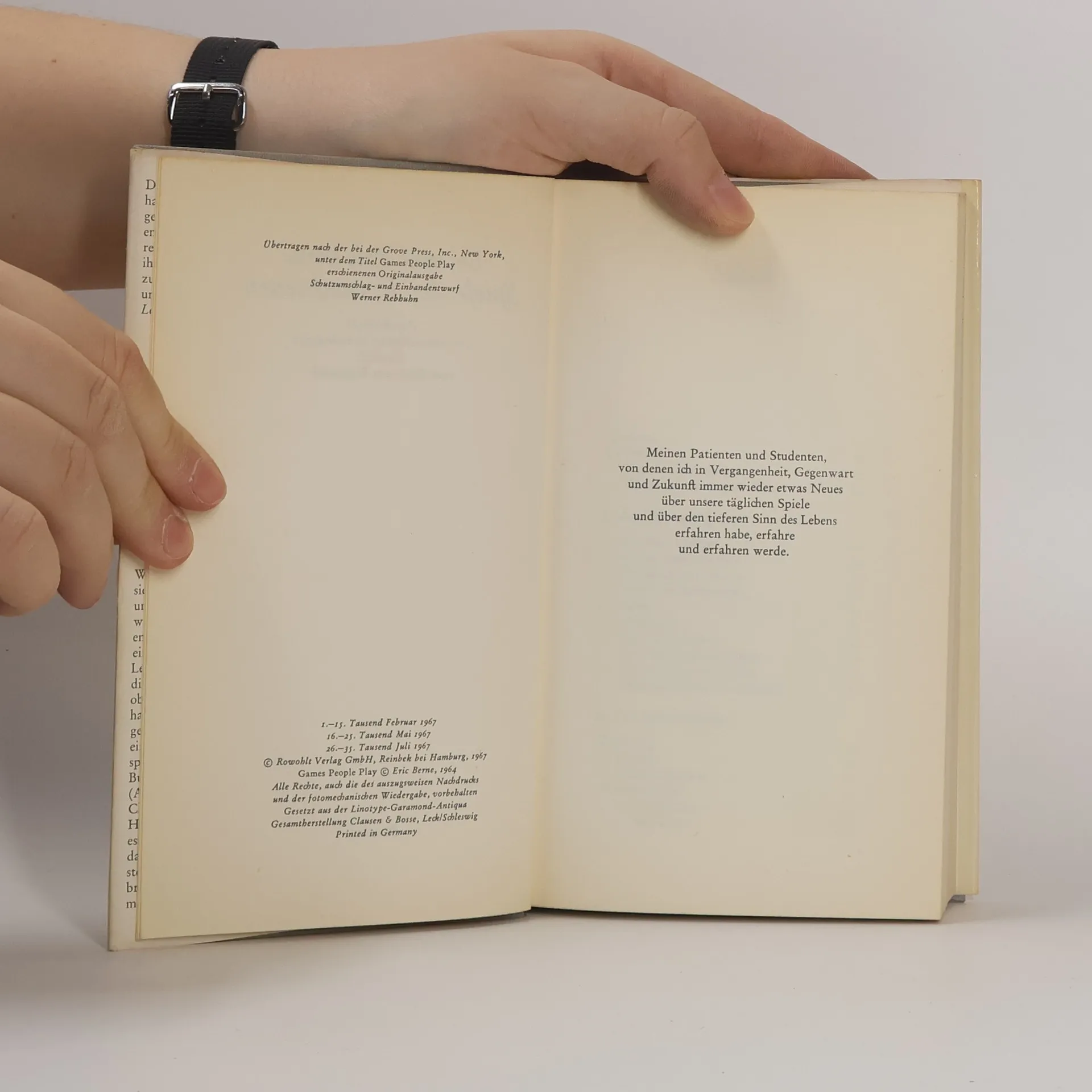 Eric Berne macht auf wissenschaftlich kompetente und dabei geistreich amüsante Weise deutlich, wie das Erkennen der eigenen Ehe-, Party-, Sex-, Räuber-, Doktor- und Lebensspiele dem Menschen zu einer neuen Bewusstheit verhilft und ihm den Weg zu einer konstruktiven Lebensführung ebnet. Das bringt neben ungetrübtem Lesevergnügen einen befreienden Erkenntniszuwachs in den ernsten persönlichen, familiären und gesellschaftlichen Krisensituationen des Alltags.