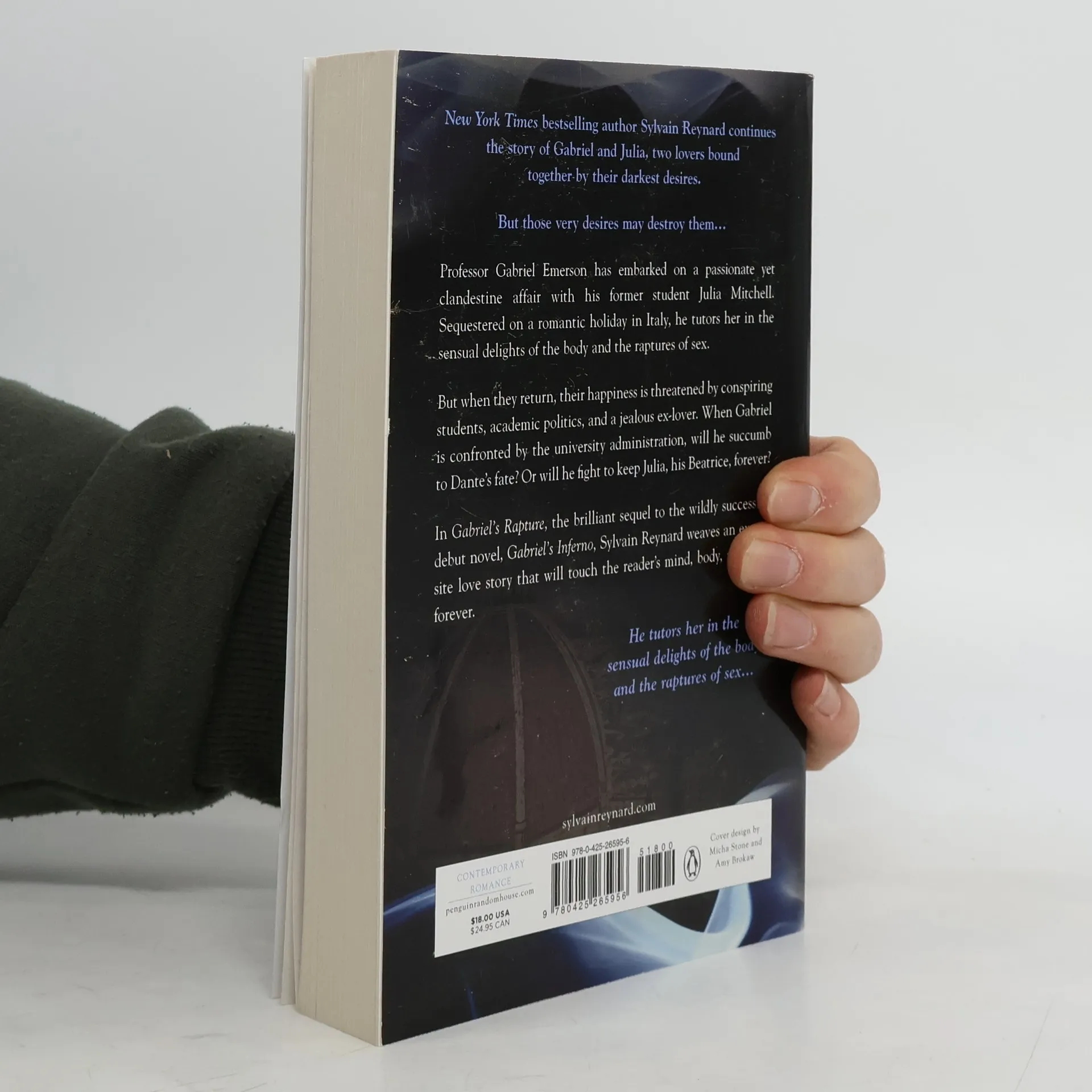 New York Times bestselling author Sylvain Reynard continues the story of Gabriel and Julia, two lovers bound together by their darkest desires. But those very desires may destroy them—NOW A FILM FROM PASSIONFLIX! Professor Gabriel Emerson has embarked on a passionate, yet clandestine affair with his former student Julia Mitchell. Sequestered on a romantic holiday in Italy, he tutors her in the sensual delights of the body and the raptures of sex. But when they return, their happiness is threatened by conspiring students, academic politics, and a jealous ex-lover. When Gabriel is confronted by the university administration, will he succumb to Dante’s fate? Or will he fight to keep Julia, his Beatrice, forever? In Gabriel’s Rapture, the brilliant sequel to the wildly successful debut novel, Gabriel’s Inferno, Sylvain Reynard weaves an exquisite love story that will touch the reader’s mind, body, and soul, forever.
