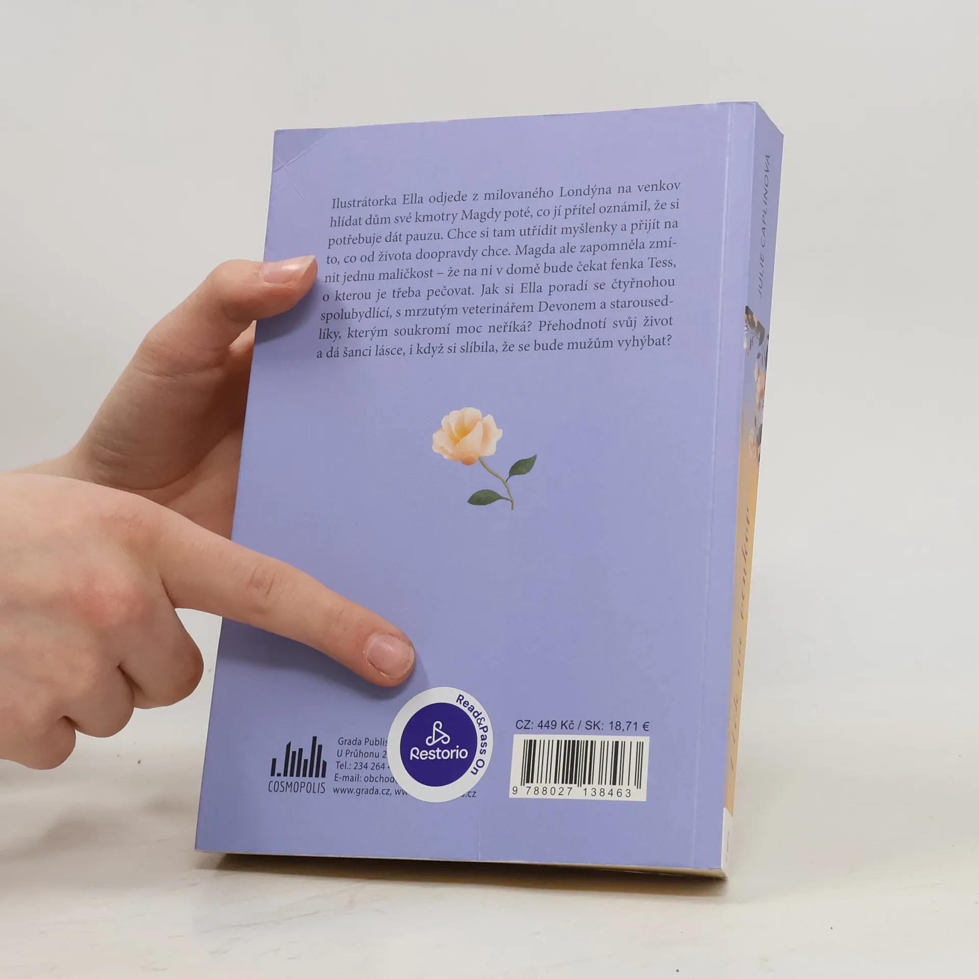 Ilustrátorka Ellla odjede z milovaného Londýna na venkov hlídat dům své kmotry Magdy poté, co jí přítel oznámil, že si potřebuje dát pauzu. Chce si tam utřídit myšlenky a přijít na to, co od života doopravdy chce. Magda ale zapomněla zmínit jednu maličkost – že na ni v domě bude čekat fenka Tess, o kterou je třeba pečovat. Jak si Ella poradí se čtyřnohou spolubydlící, s mrzutým veterinářem Devonem a starousedlíky, kterým soukromí moc neříká? Přehodnotí svůj život a dá šanci lásce, i když si slíbila, že se bude mužům vyhýbat?