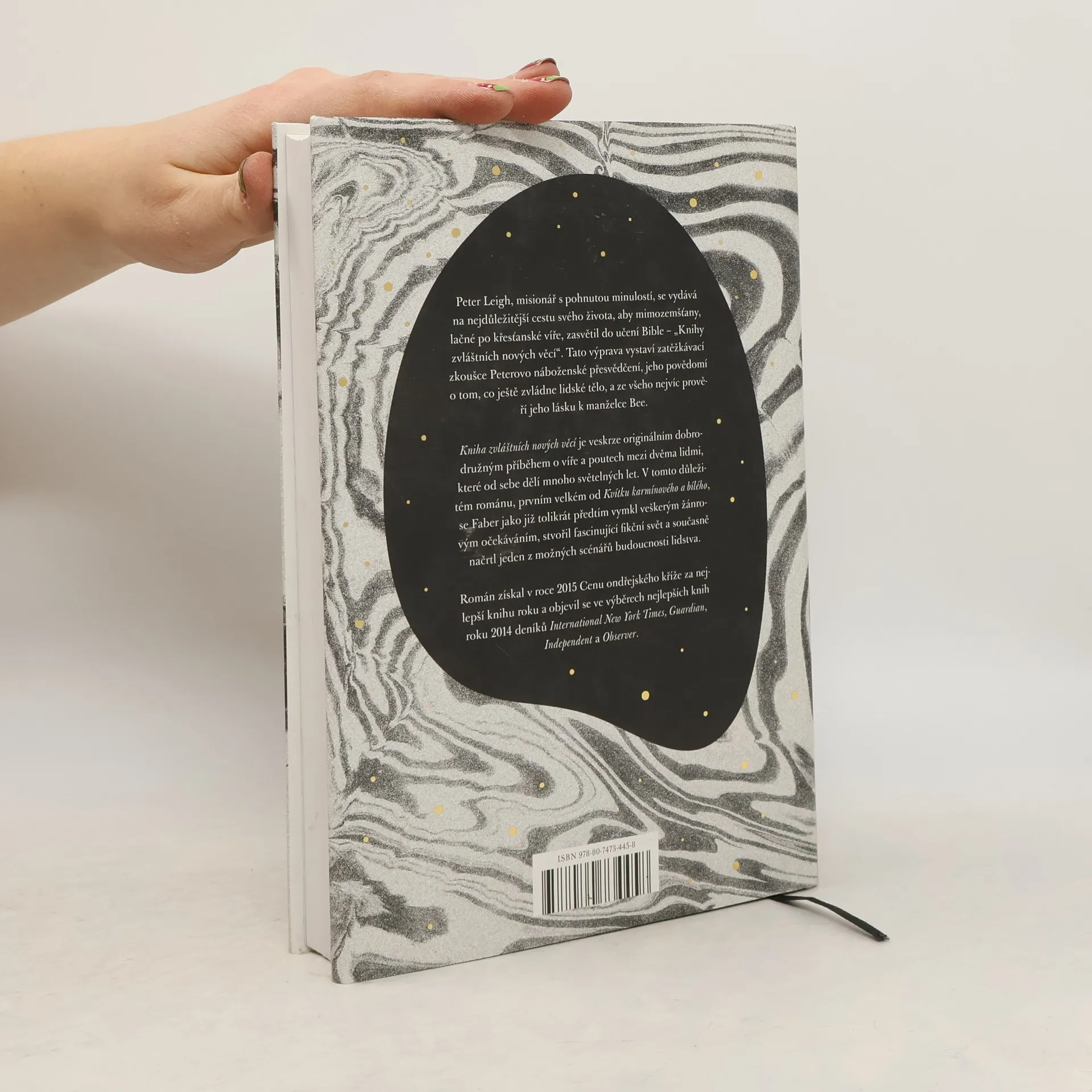 Peter Leigh je misionář s pohnutou minulostí, který se má vydat na nejdůležitější cestu svého života. Opustí tak svou milovanou manželku Beu a po dlouhém letu dorazí na vzdálenou planetu, kde místní obyvatelé lační po učení Bible – jeho „knihy zvláštních nových věcí“. Tato výprava vystaví zatěžkávací zkoušce Peterovo náboženské přesvědčení, jeho povědomí o tom, co ještě zvládne lidské tělo, a ze všeho nejvíc jeho lásku k Bee. Kniha zvláštních nových věcí je veskrze originálním dobrodružným příběhem o víře a poutech mezi dvěma lidmi, které od sebe dělí mnoho světelných let. V tomto velkém románu se M. Faber jako již tolikrát předtím vymkne veškerým žánrovým očekáváním...