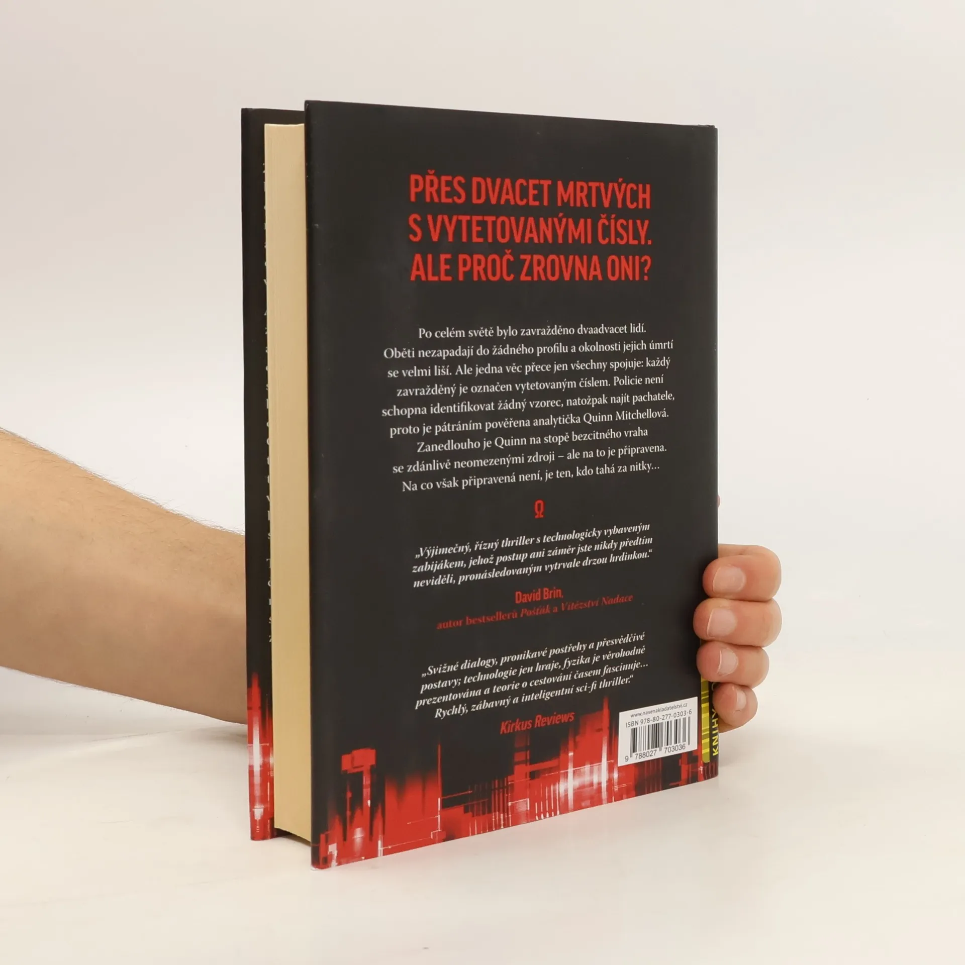 Změnili bychom svoji přítomnost, kdyby se nám naskytla možnost nahlédnout do budoucnosti? Můžeme se spolehnout na práci zpravodajských a tajných služeb a věřit jim, že se upřímně snaží zajistit obyvatelům této planety poklidný život v míru? Analytička Quinn Mitchellová se celý život snažila být dobrou manželkou a matkou. Po tragické smrti dcery se ovšem ocitá ve víru událostí, o kterých se jí dřív ani nezdálo. Když se po světě bez zjevné souvislosti začínají objevovat oběti s vytetovaným číslem, pouští se Quinn, která spatřuje nový smysl života v užší spolupráci se CIA, po stopách tajemného sériového vraha. Nová práce vyšetřovatelky ji nutí opustit domnělé bezpečí kanceláře a virtuálního prostředí a vrhnout se do světa kruté reality. Tento originálně napsaný román zavádí čtenáře do blízké budoucnosti a nabízí mu nevšední pohled na činnost tajných služeb a osudy lidí, kteří se rozhodli boji za spravedlnost zasvětit svůj život.