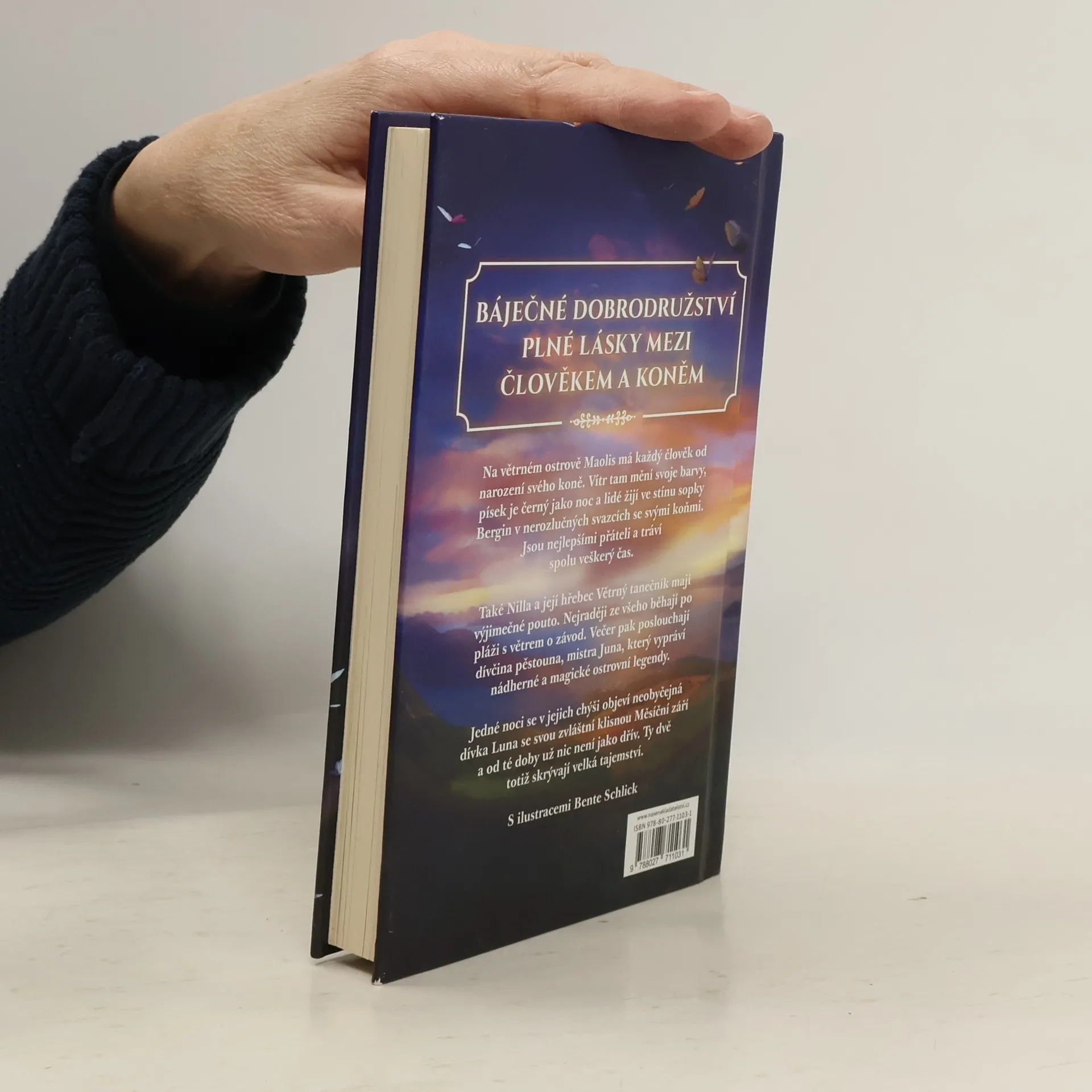 Na větrném ostrově Maolis má každý člověk už od narození svého koně. Vítr tam mění barvy, písek je černý jako noc a lidé žijí ve stínu sopky Bergin v nerozlučných svazcích se svými zvířaty. Jsou nejlepšími přáteli, tráví spolu veškerý čas a neexistuje naprosto nic, co by je mohlo rozdělit.Také Nilla a její hřebec Větrný tanečník mají neobyčejné pouto. Nejraději ze všeho spolu prostě jenom běhají po pláži s větrem o závod. Večer pak poslouchají dívčina pěstouna, mistra Juna, který vypráví nádherné a magické ostrovní legendy.Jedné noci se však v jejich chýši objeví neobyčejná dívka Luna se svou zvláštní klisnou Měsíční září a od té doby už nic není jako dřív. Ty dvě totiž skrývají velká tajemství.Vydejte se s našimi hrdiny na báječné dobrodružství plné větru, magie a lásky mezi člověkem a koněm, kterou nemůže nic zničit.