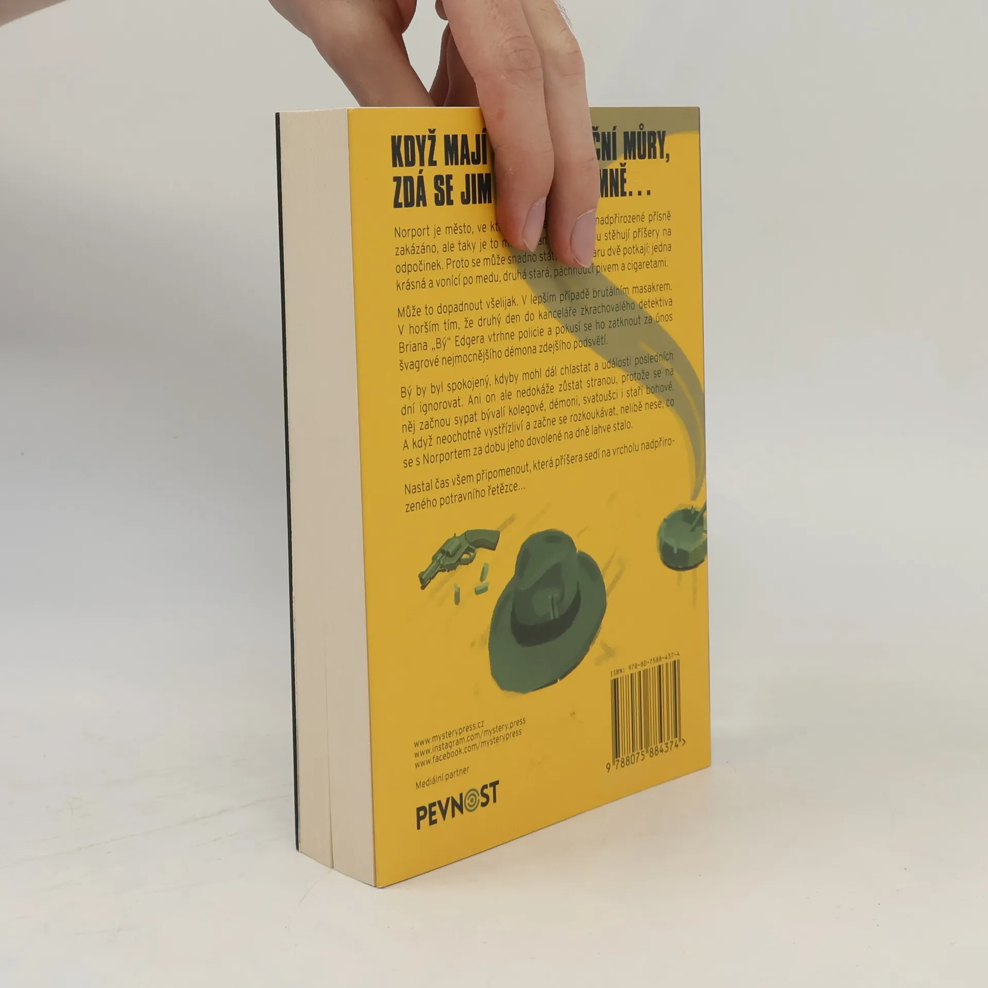 KDYŽ MAJÍ PŘÍŠERY NOČNÍ MŮRY, ZDÁ SE JIM VŽDYCKY O MNĚ…Norport je město, ve kterém je vše magické a nadpřirozené přísně zakázáno, ale taky je to město, kam se s oblibou stěhují příšery na odpočinek. Proto se může snadno stát, že se v baru dvě potkají: jedna krásná a vonící po medu, druhá stará, páchnoucí pivem a cigaretami.Může to dopadnout všelijak. V lepším případě brutálním masakrem. V horším tím, že druhý den do kanceláře zkrachovalého detektiva Briana „Bý“ Edgera vtrhne policie a pokusí se ho zatknout za únos švagrové nejmocnějšího démona zdejšího podsvětí.Bý by byl spokojený, kdyby mohl dál chlastat a události posledních dní ignorovat. Ani on ale nedokáže zůstat stranou, protože se na něj začnou sypat bývalí kolegové, démoni, svatoušci i staří bohové. A když neochotně vystřízliví a začne se rozkoukávat, nelibě nese, co se s Norportem za dobu jeho dovolené na dně lahve stalo.Nastal čas všem připomenout, která příšera sedí na vrcholu nadpřirozeného potravního řetězce…